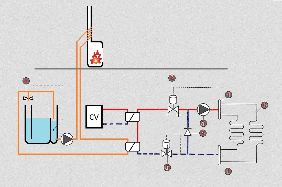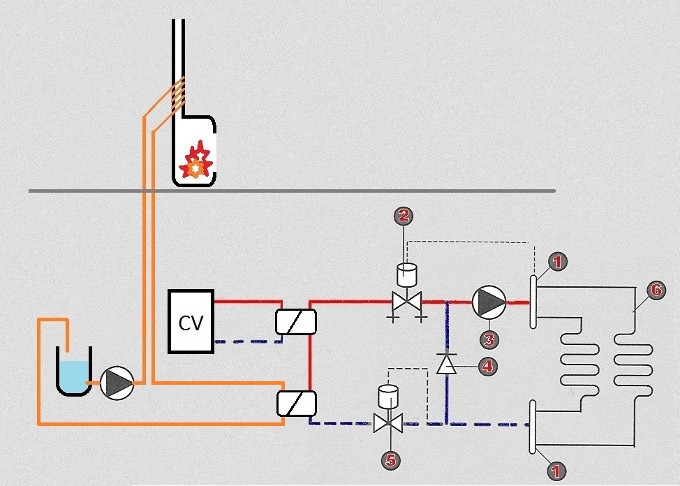 Nu wil ik graag wat warmte wat ontsnapt uit de schoorsteen terugwinnen en in de tot nu toe ongebruikte vloerverwarming stoppen. Ik heb niet de illusie dat ik hiermee de vloerverwarming op temperatuur krijg ik zie het enkel als aanvulling / accumulator.
