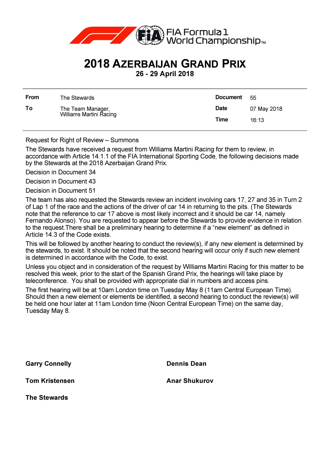 Het zou me niet verbazen als in het originele document van de FIA nummer 17 stond.MikeyMan schreef op dinsdag 8 mei 2018 @ 10:57: