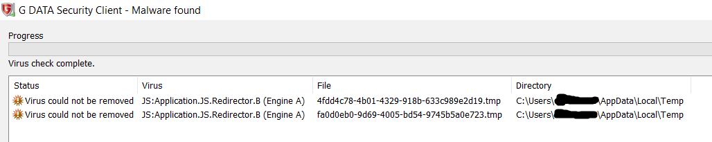 En als ik G Data Security alleen de map C:\Users\***\AppData\Local\Temp\ laat scannen, dan krijg ik de melding dat er geen virussen zijn...