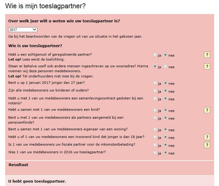 En om het nogmaals te laten zien dat ze zowel geen fiscaalpartner, als toeslagpartner zijn: