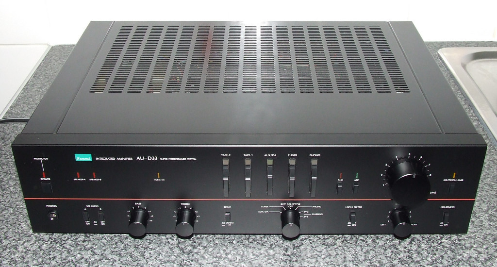 -Sansui AU-D33 versterker, met Phono (zowel MM als MC) RCA/tulp connectors.
