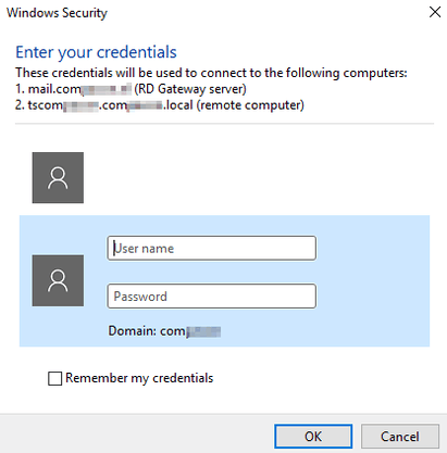 RDP in domein naar andere server buiten het bedrijf mag dus niet, enige idee in welke hoek ik moet zoeken om dit werkend te krijgen?