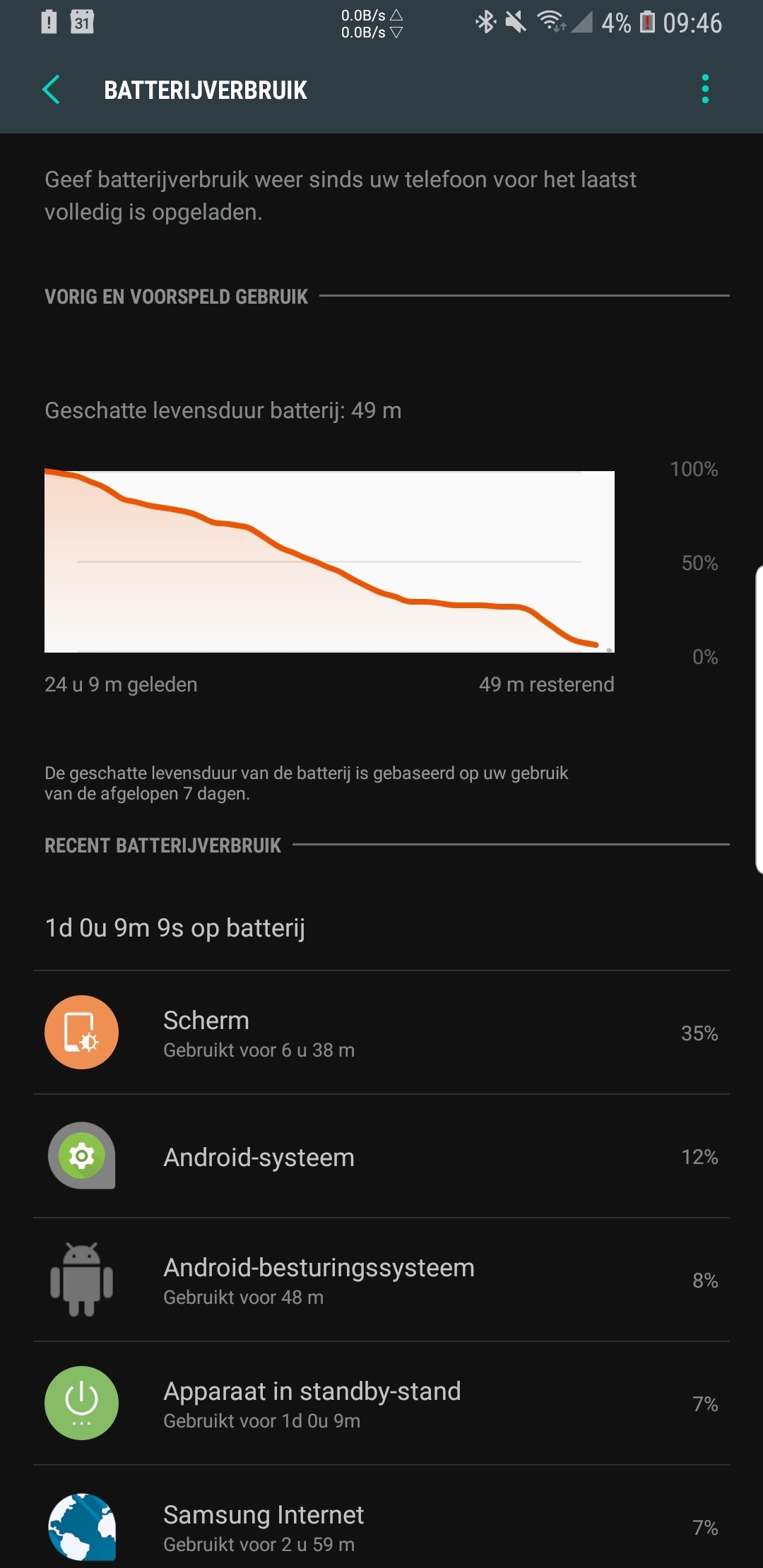 Na drie jaar Apple weer overgestapt naar Android. Helaas is het meteen weer feest. Op de een of andere manier loopt de standby heel hard met de accu power ervandoor. Helaas helpt de geïnstalleerde software van Samsung niet mee met het isoleren van het probleem. Niets is aan het slurpen, aldus de device maintenance software. Heeft iemand nog tips hoe dit te tekkelen zonder lang her installeer en nog meer eindeloos testen trajecten? Verder is de snelheid en Android sinds mijn Lollipop ervaring sterk verbeterd. Alleen dat typische Android battery geneuzel nog. Kan eventueel wat screenshots delen. Scherm draait op volle resolutie. Draai geen gekke apps. Geen root of andere gekkigheid. Juist omdat ik mijn Android ervaring van 3 jaar terug kan herinneren. But here we are. Again. Met een spiksplinternieuwe Android flagship no less. Thanks guys!