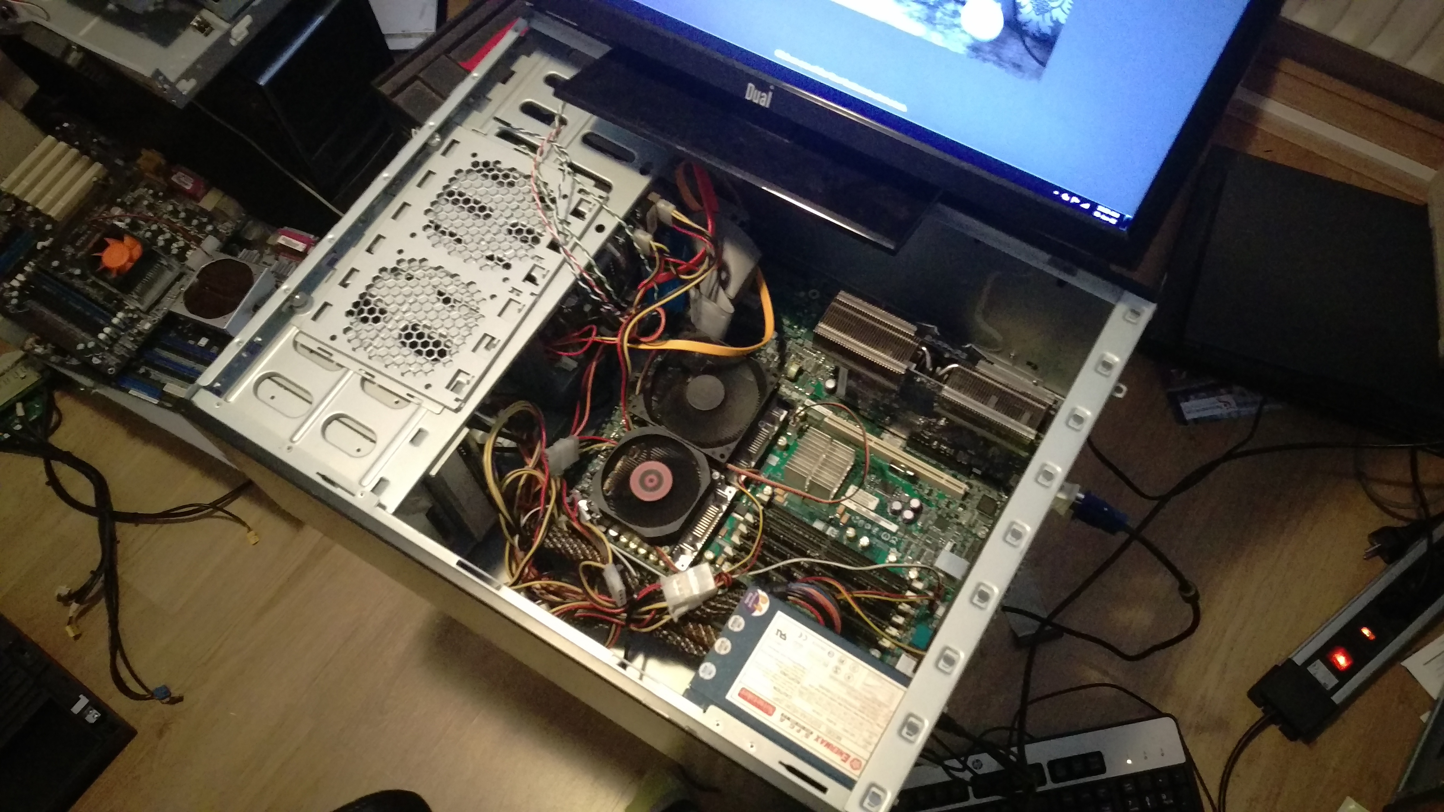 Dus deze pc in de kast gestopt maar toen kwam ik erachter dat de gpu slots 8x waren en niet open dus er kon geen videokaart in.