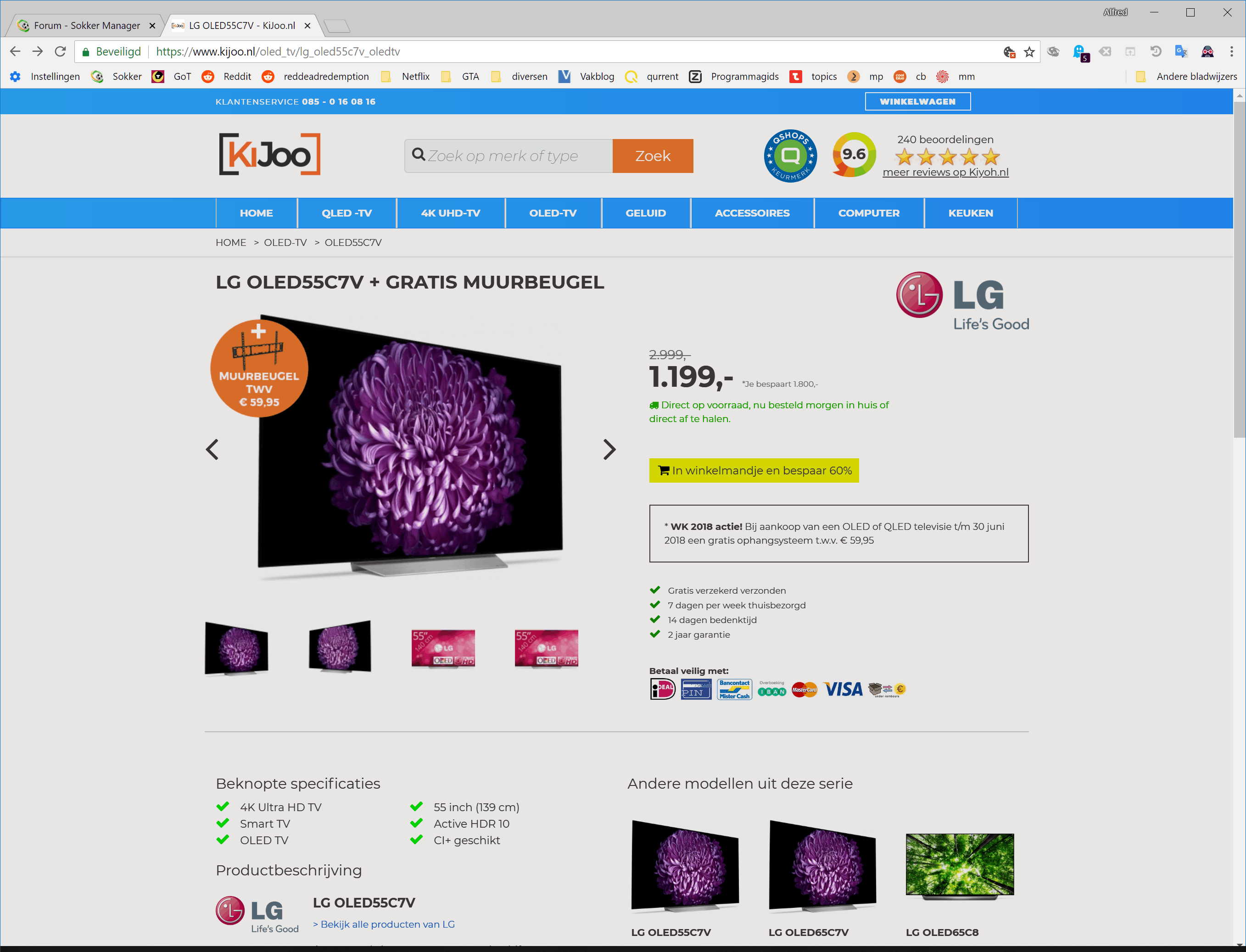 Verder heb ik bij Foka de C8 65 inch besteld voor 2780 inclusief verzending en 5 jaar garantie.