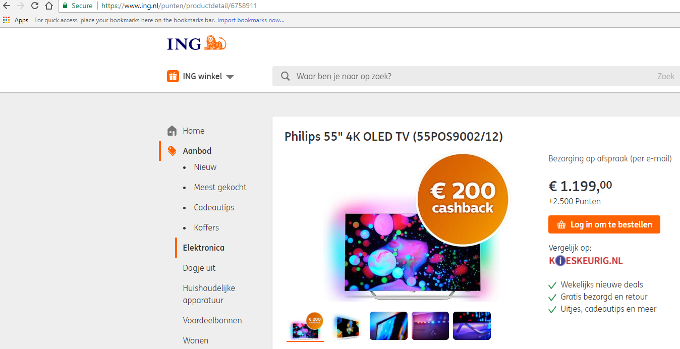 Net gedaan, zelfde aanbod: LG OLED65C8 voor 2750 (en daarna 500 cashback)