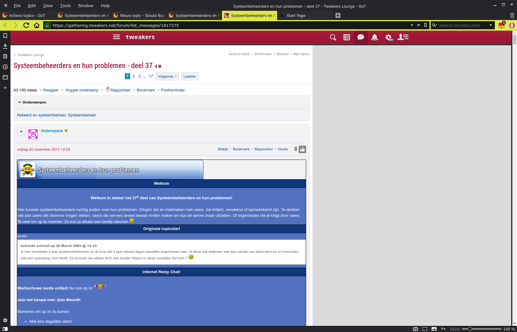 Wanneer ik een link open in een nieuwe tab in Vivaldi 1.14.1077.25 (Official Build) snapshot (64-bit) op Debian, krijg ik de tablet layout. Wanneer ik een link open in een bestaan de tab, gaat het wel goed. Op andere websites heb ik geen problemen. Ook in andere browsers niet (o.a. Chrome dev).