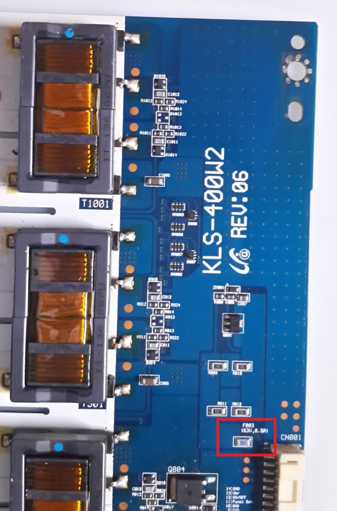 Na wat checks blijkt ook bij deze de smd F003 fuse kapot. (zie rode vierkant op de foto):