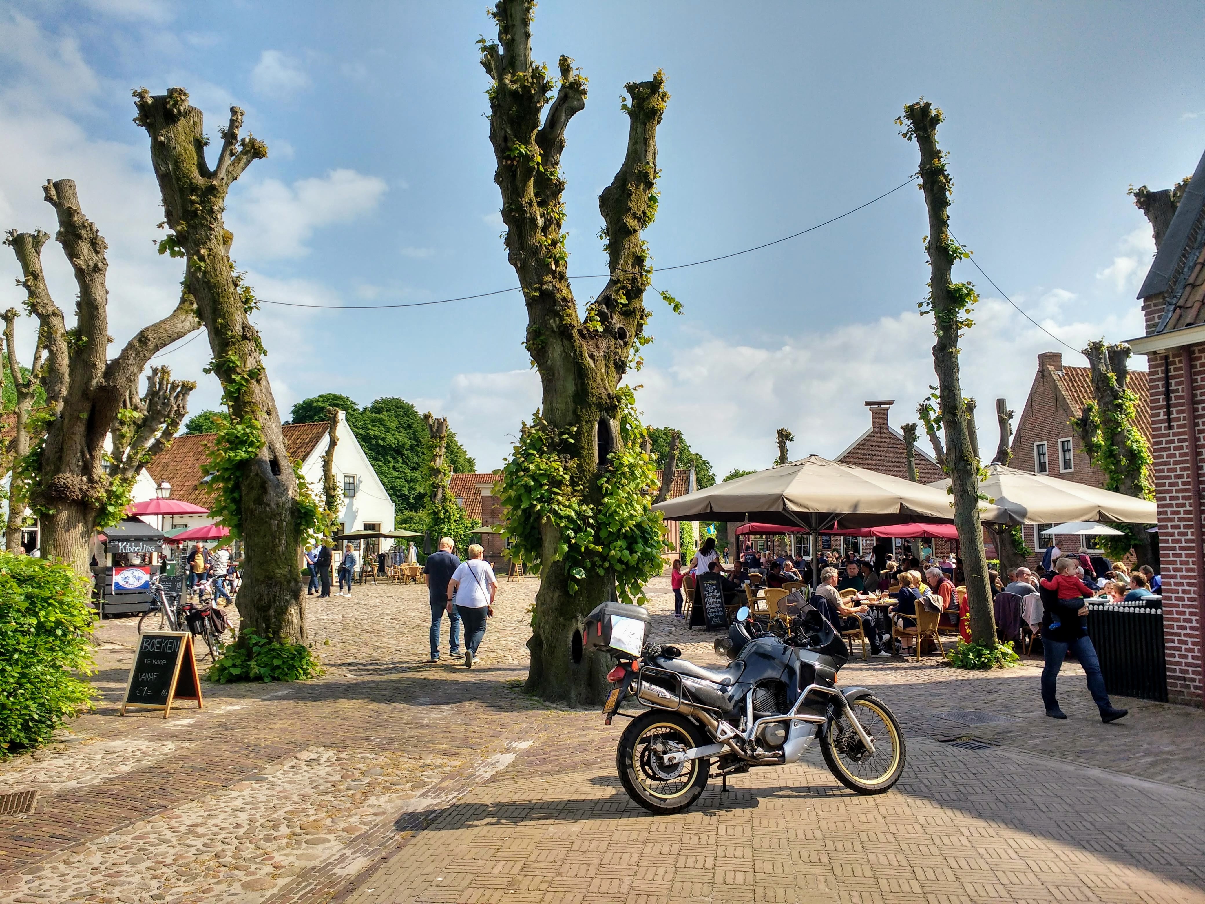 2-wieler aan de kant, brander op de stoep, koffie pruttelt en stokbroodje met Nutella gaat er goed in.