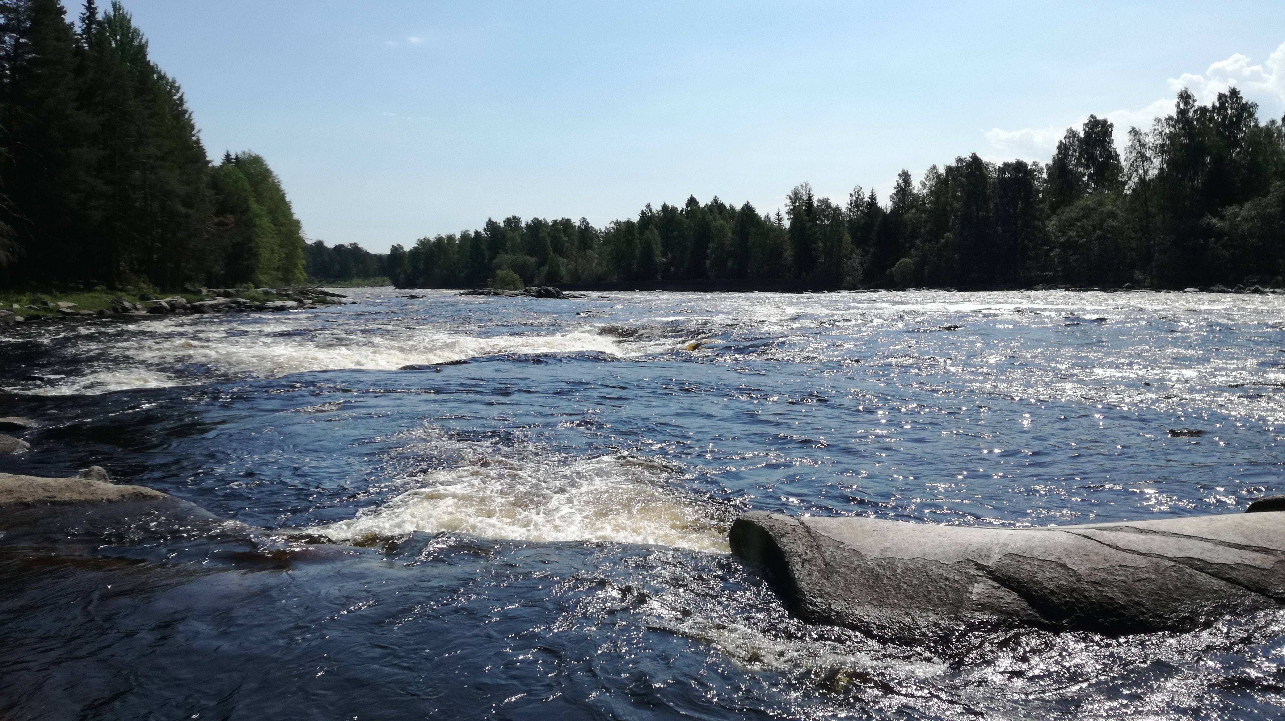 We schieten goed op, maar krijgen het toch wel erg warm, dus maken we een noodstop zodra we het bordje "badplaats" zien en nemen een duik in een lokaal meertje. Even later zitten we lekker afgekoeld in het gras, als er plotseling enorm gedonder boven ons klinkt. Zit er een enorme onweerswolk vlakbij ons, die we door de hoge bomen bij het meer niet aan hadden zien komen