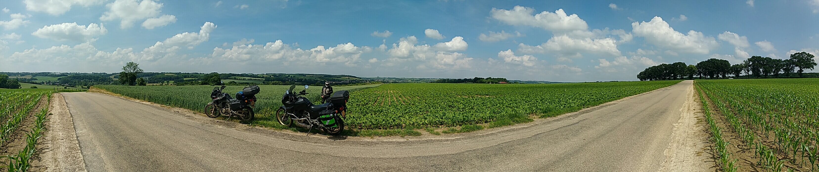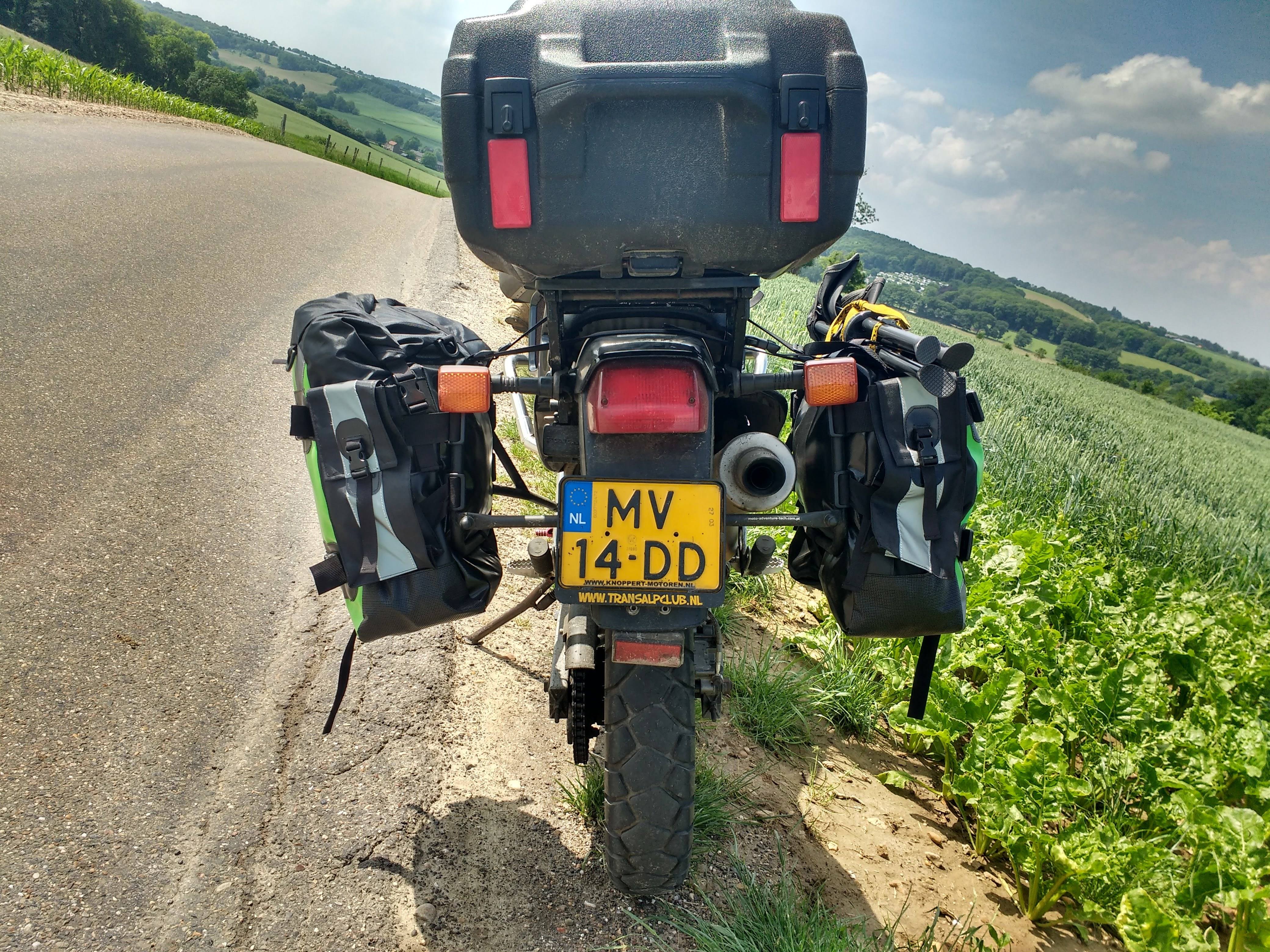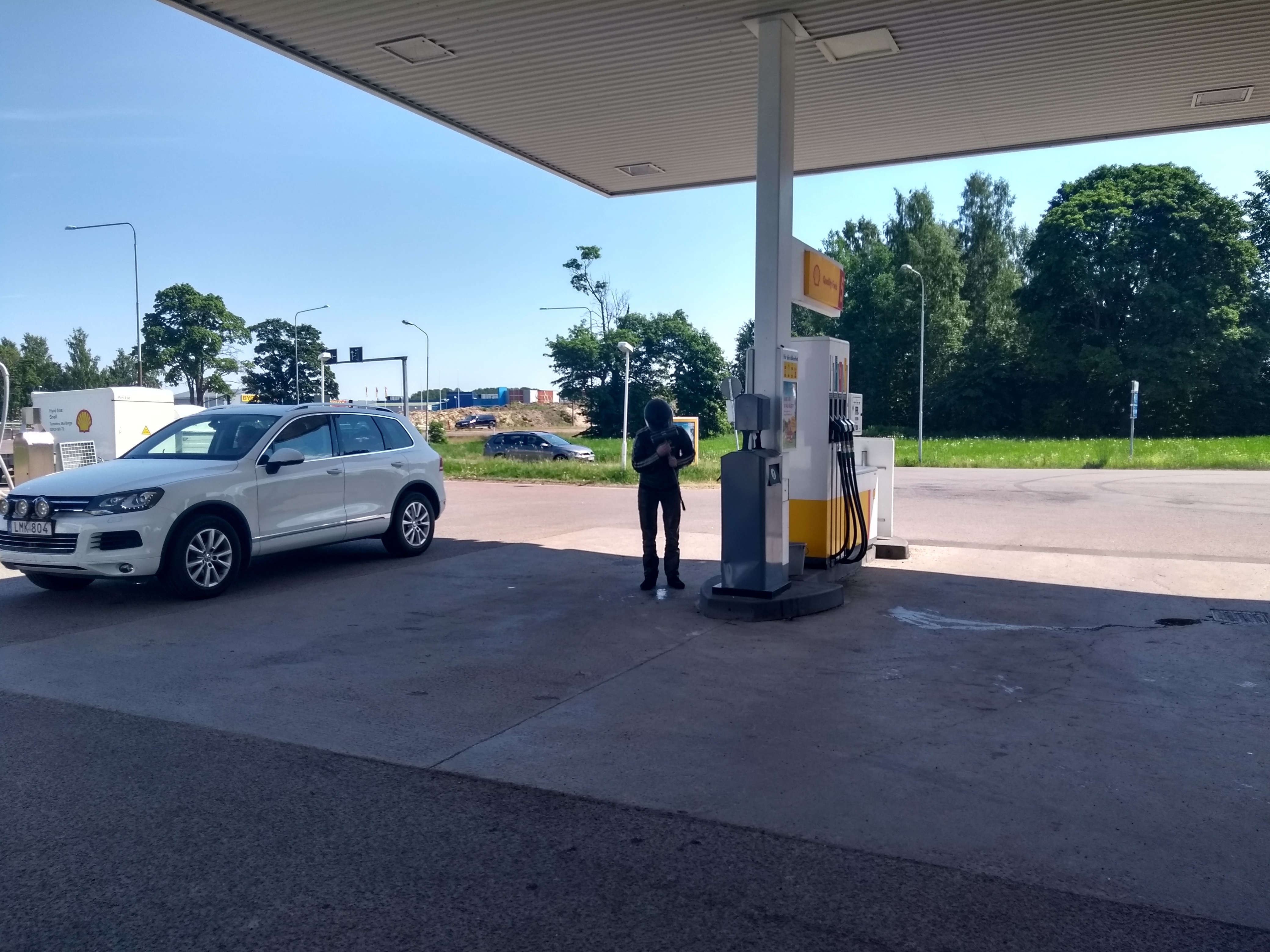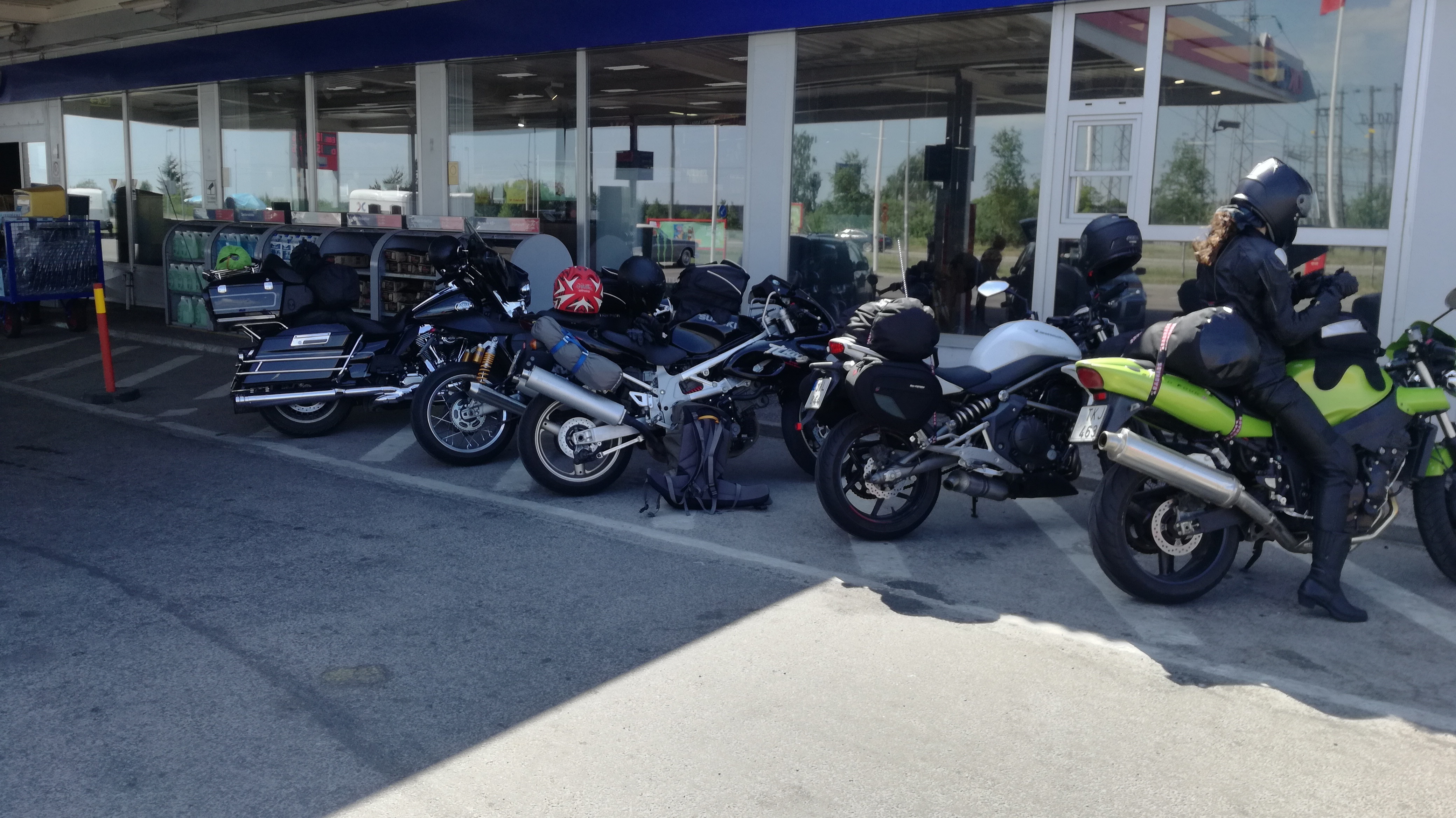natuur weer achter ons lieten was het lekker doorrijden, maar op een gegeven moment kregen onze motoren ook dorst (vooral de Triumph, haalde net 1:17 waarbij de Kawa genoegen nam met een zeer bescheiden 1:21) en toen bleek dat er meer mensen op de motor op reis waren: