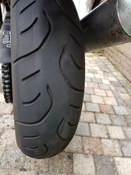 Ik was het al in de gaten aan het houden, maar nu heeft de achterband het punt van vervangen ook vrijwel bereikt. Dat zijn nu dus 7.500 km. Een stuk minder dan de vorige met 11.500 km. Allebei Pilot Road 4. Deze heeft natuurlijk wel een weekendje Schwarzwald meegemaakt; de vorige niet.