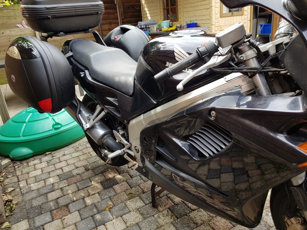 On another note; ik heb besloten mijn trouwe fietsje in de verkoop te gooien. Afgelopen week ben ik er een keer mee naar het werk geweest (80 km v.v.), en dat bracht me niet meer de lol die ik er vroeger mee had. Ik heb een paar jaar geleden een heupblessure opgelopen, en ben daar nooit meer helemaal van af gekomen. Afgelopen dagen wist ik dus weer waarom ik zo weinig gereden heb de afgelopen paar jaar. E.e.a. gecombineerd met een kiddo die ook veel tijd vreet, is het dus tijd geworden om de VFR in de verkoop te doen.
