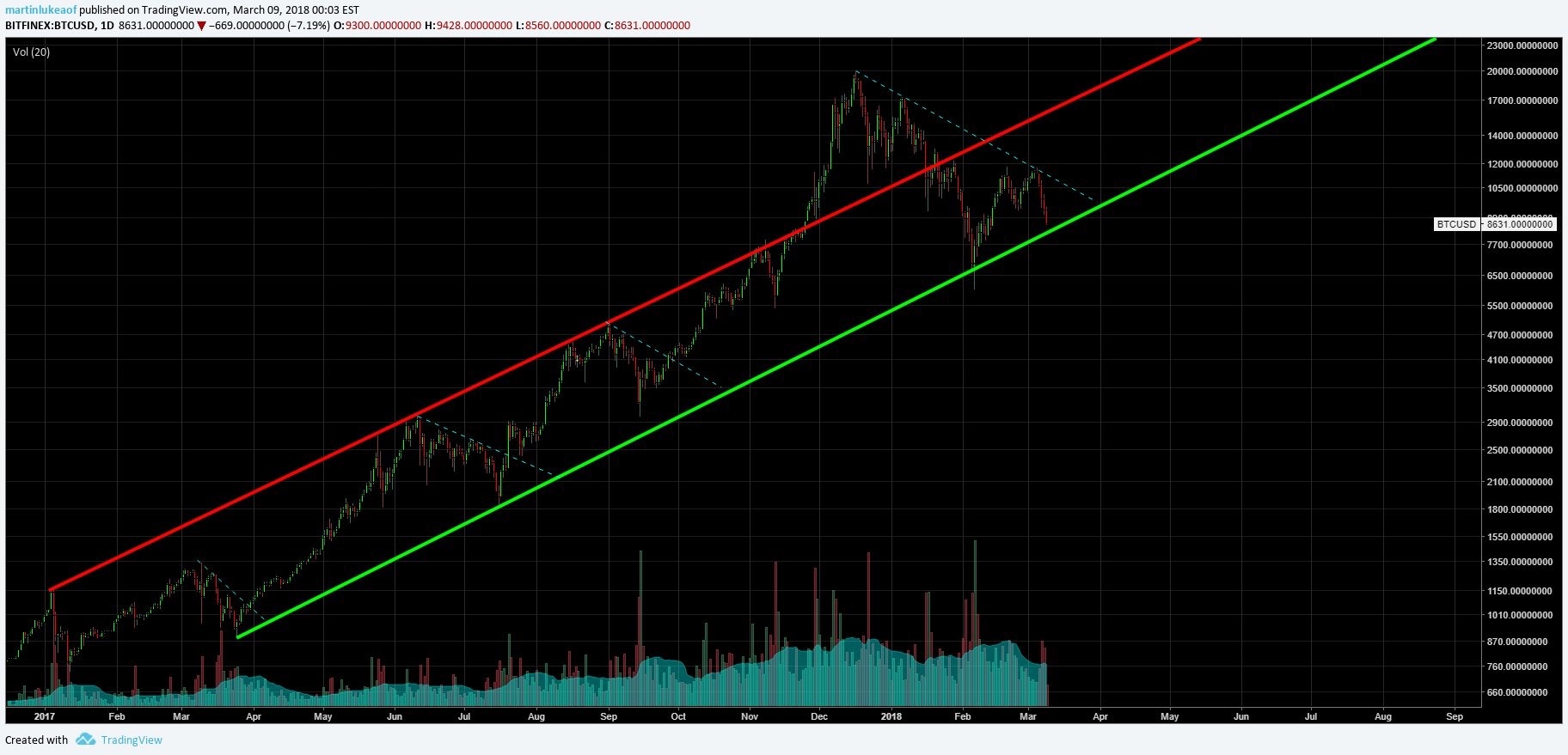Ik zou de hoop op een zesde digit wat dichter bij de block reward halving plaatsen (>800d).