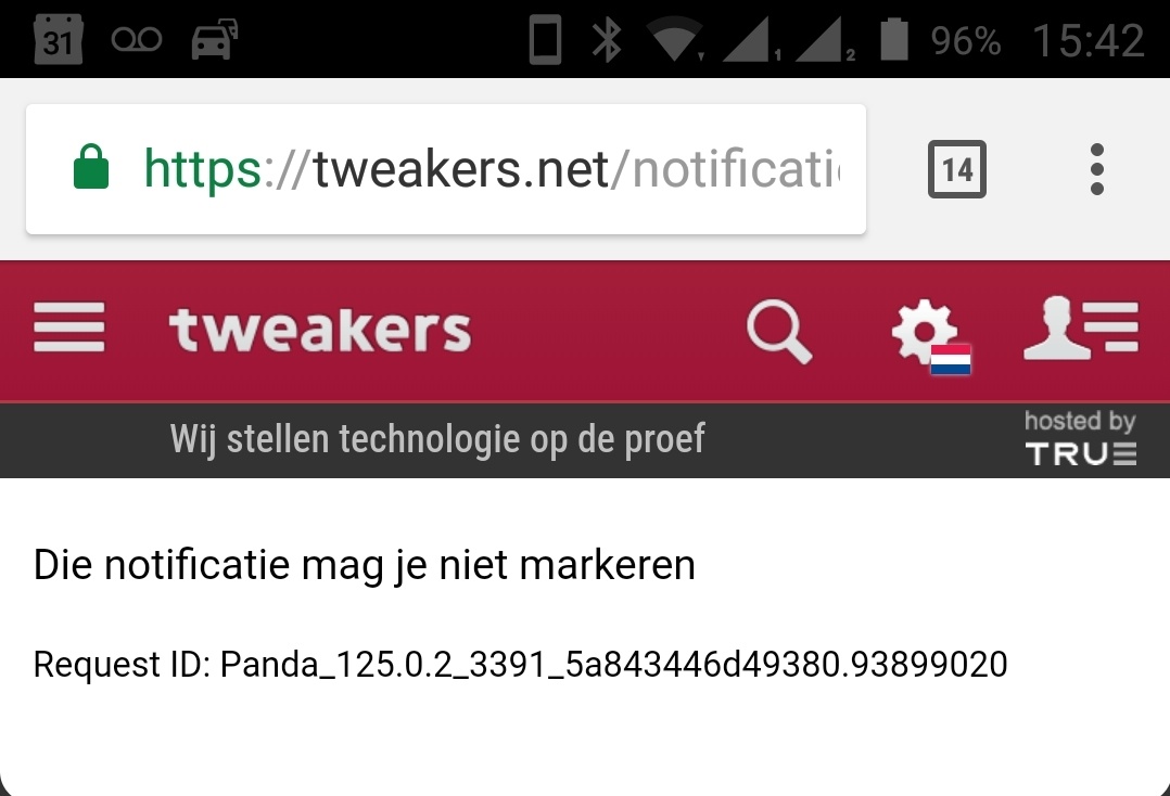 Correct ik was niet ingelogd. Ik vermoed dat het een andere melding had moeten zijn, in de richting van "Nieuw push bericht. Log in om het bericht te kunnen bekijken"crisp schreef op woensdag 14 februari 2018 @ 17:45:
