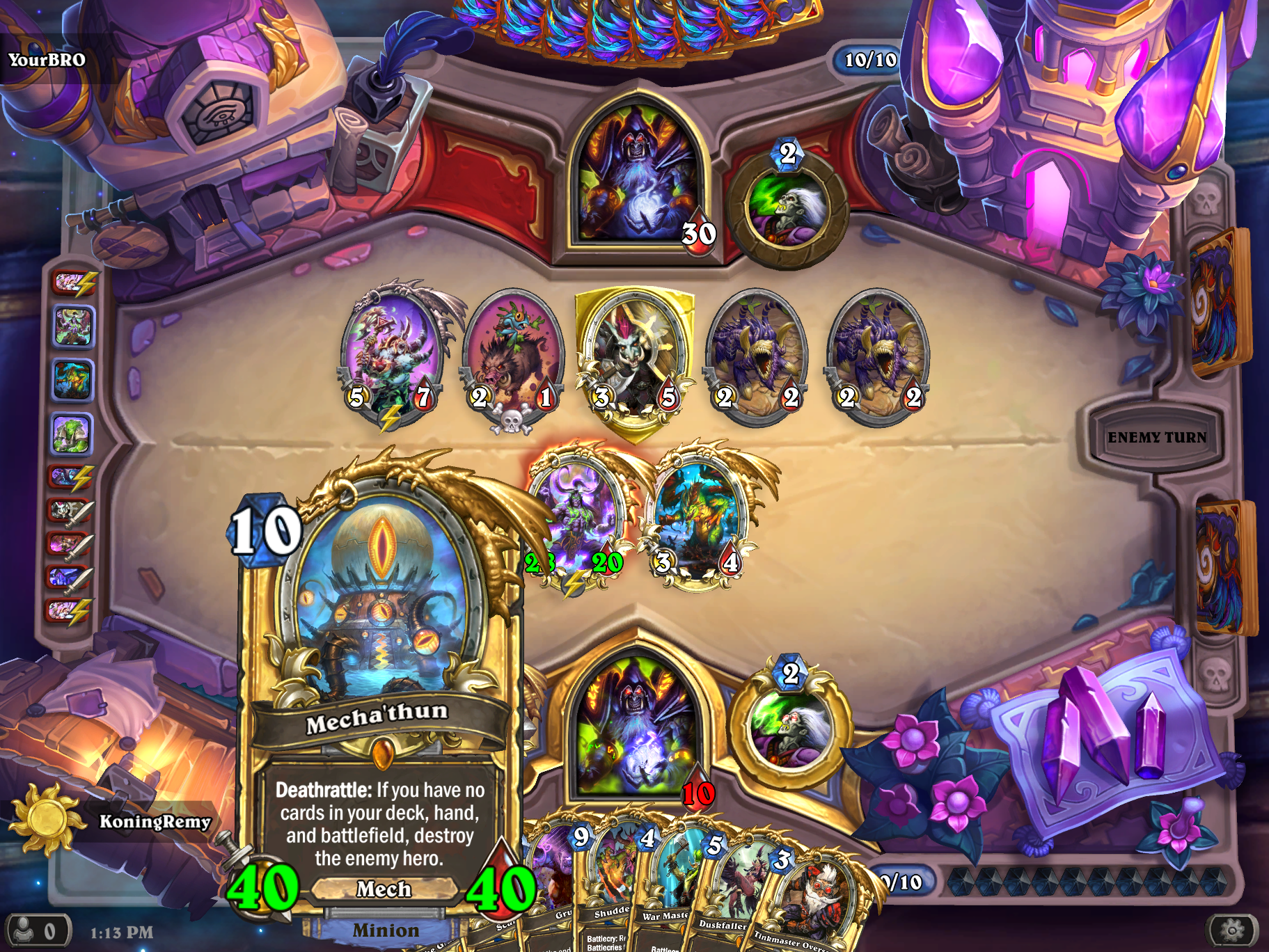 Zag gisteravond Rdu een leuk Rogue deck spelen met die eerste 2 en wilde sowieso Heistbaron hebben. verder ontbrak alleen Barista in onderstaand Dragon Boom Bomb deck dus die heb ik ook maar gecraft, vanmorgen 1 game mee gespeeld, duurde wel >30 minuten of zo! Control warrior tijden herleefden! En wat een value uit die kaarten, vooral Warmaster Voone, Barista Lynchen en Dragon Roar deden het erg goed