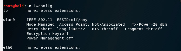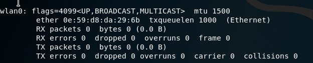 Sinds kort heb ik een VM gemaakt in virtualbox en hierop de nieuwste kali linux geïnstalleerd. Ik heb een USB wifi dongle aan mijn computer gehangen die samen moet werken met kali linux. Ik start de machine op en voeg de USB aan de machine toe. Als ik ifconfig typ zie ik ook mijn wifi kaart. Iwconfig zie ik ook mijn wifi kaart. Zie de screenshots.