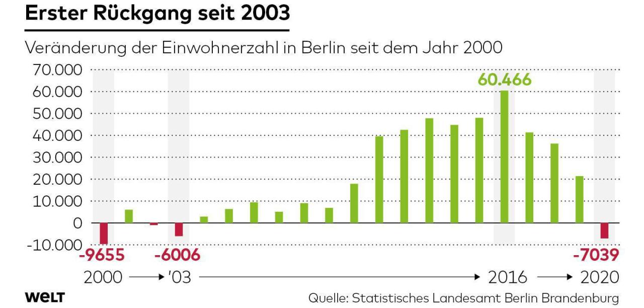 Iets anders is de ontwikkeling in twee (of meer?) Europese grote steden. Amsterdam en Berlijn dalen qua inwonertal. Dit kan tijdelijk zijn ivm corona, maar een wat langdurige trend van dalend inwonertal is moeilijk om te draaien en zeer slecht voor een stad. Ik heb dit al maanden geleden aangehaald, maar zeker nu icm met corona en het normaliseren van thuiswerken is de vraag of de stad nog wel zo'n prettige plek is over een jaar of tien. En dat de leegstand dan zijn tol begint te eisen. Iets om rekening mee te houden, of toch niet?