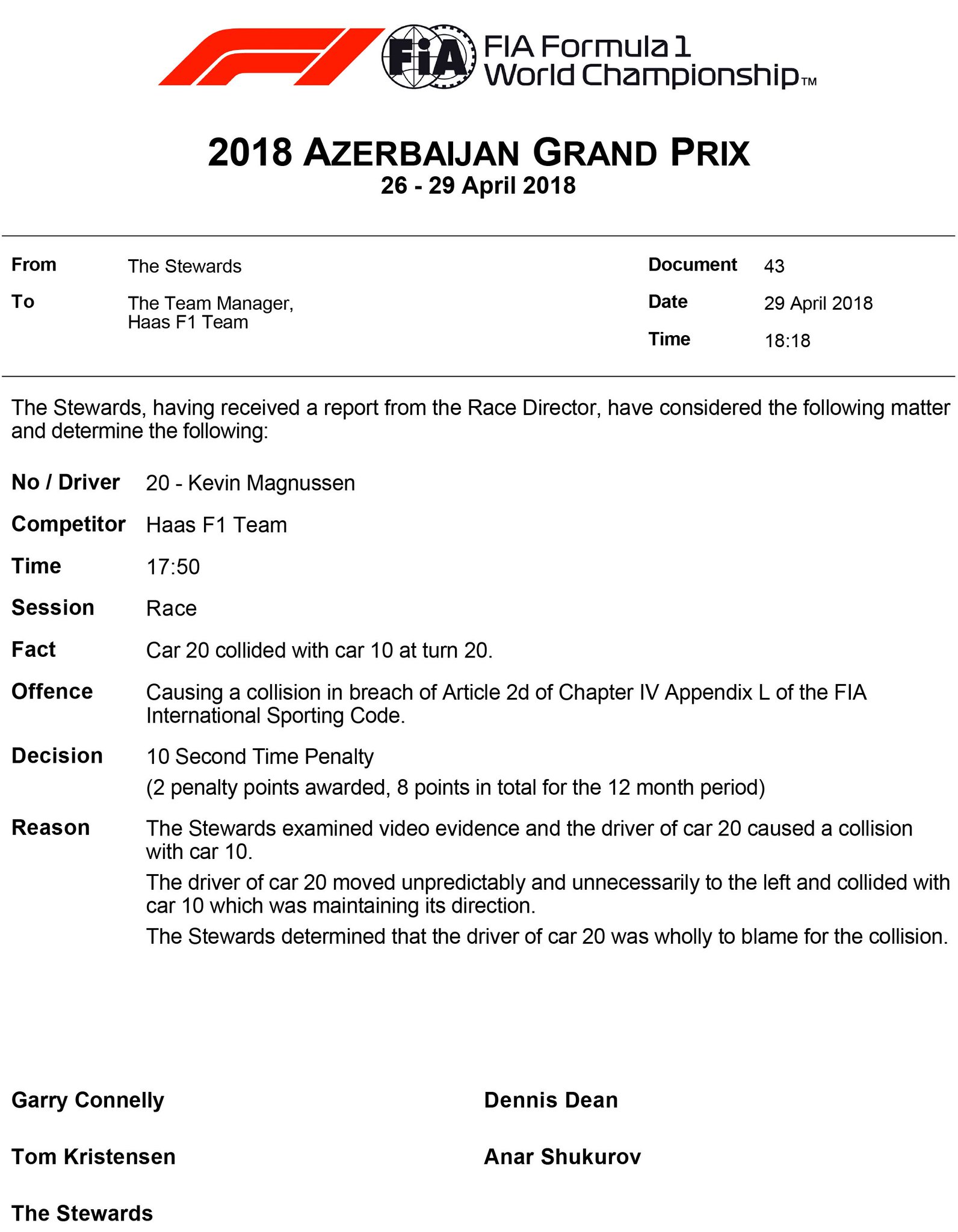 And a reprimand for Ricciardo as well comes through straight afterwards