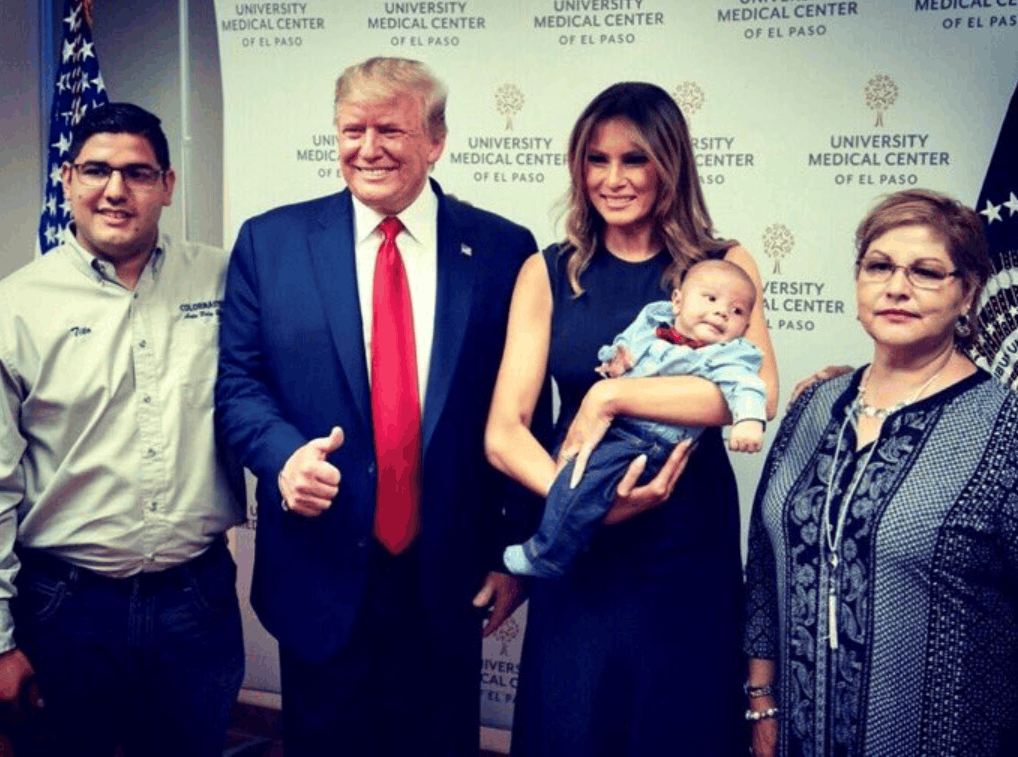 Baby verliest zijn ouders en word dan ge(mis)bruikt in een photo op met trump met duim omhoog terwijl de nieuwe wettige voogden hier tegenwaren dat dit gebeurde.