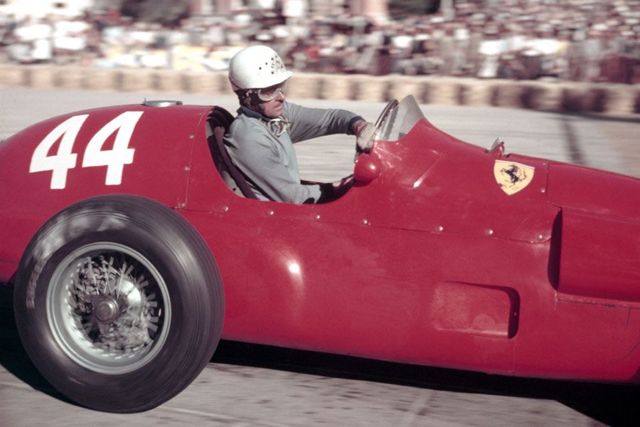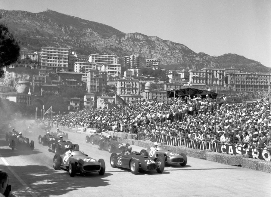 1955 Monaco, Alberto Ascari, Lancia zoekt de haven op, Maurice Trintigant, Ferrari wint de GP - via RetroRacingCo: