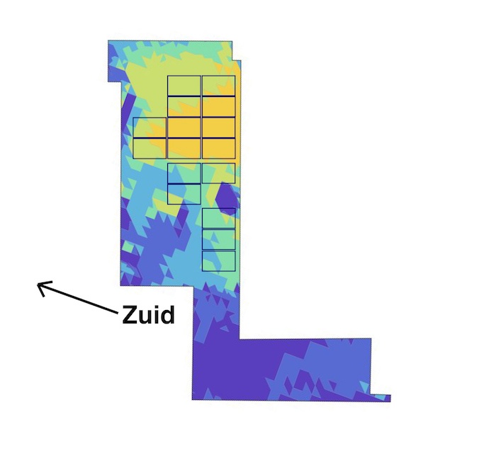 Dan kan ik zowat nog beter die grote panelen richting het noorden leggen (loopt niet heel schuin af) en het lagere rendement voor lief nemen