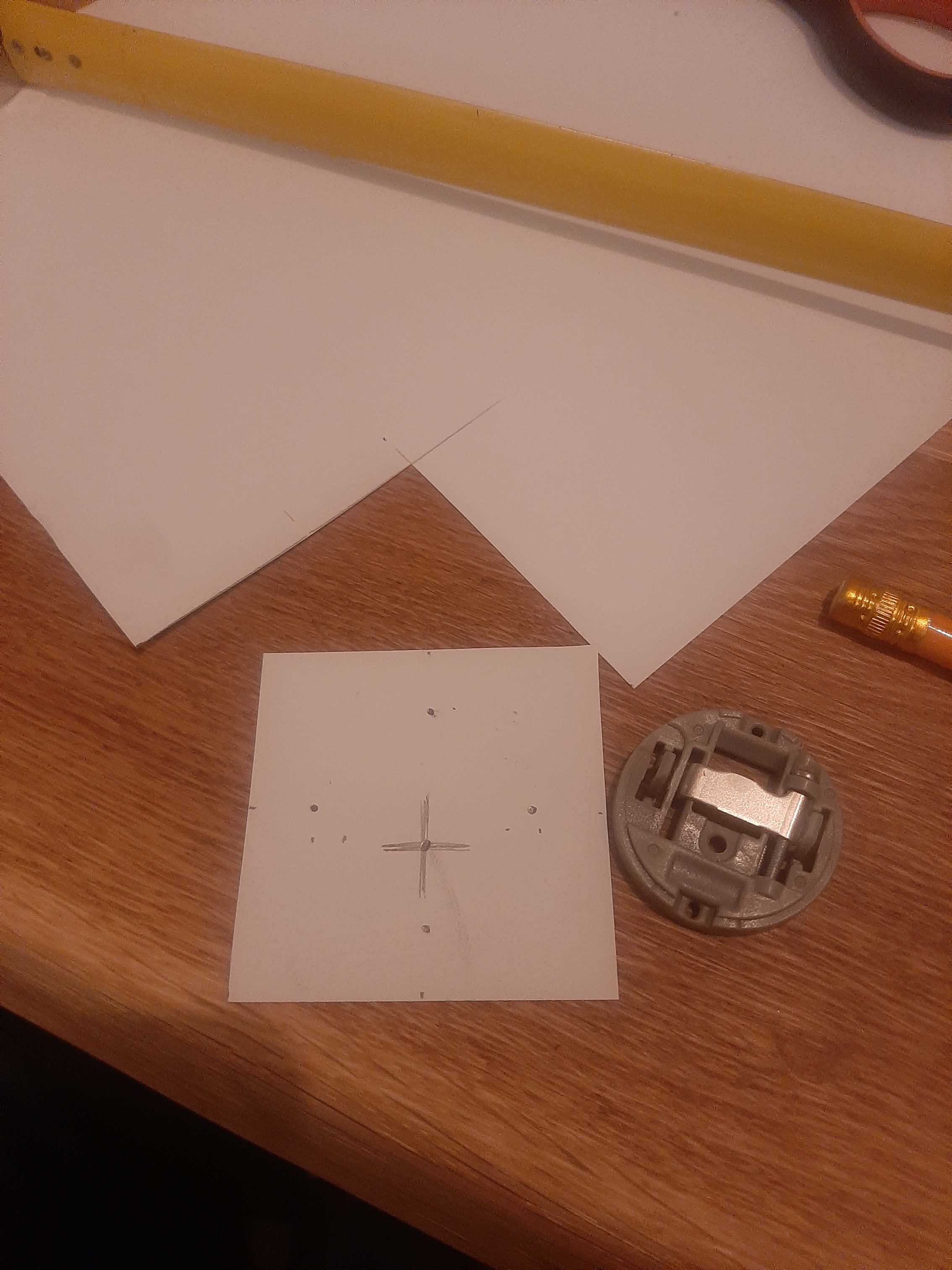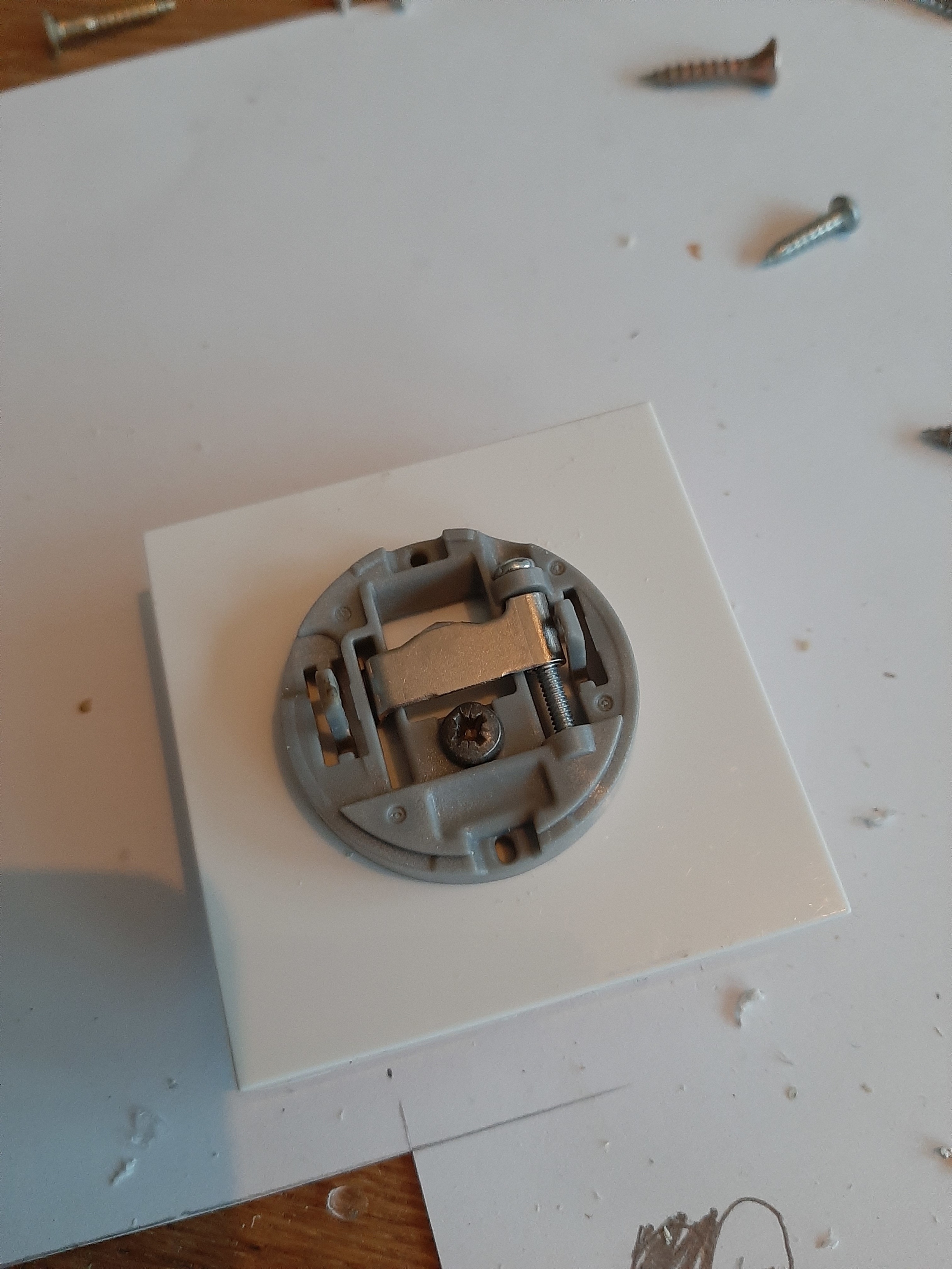 Heb eerst van papier een soort mal gemaakt zodat ik weet waar ik moet boren, daarna even voorgeboord in het blindplaatje en even geschuurd zodat de braampjes weg zijn. Daarachter een stukje hout geplakt met secondelijm zodat t blijft zitten. Later kwam ik erachter dat het voorboren van het hout het schroeven een stuk simpeler maakte. Daarna simpelweg een schroefje zoeken die erin past en lang genoeg is voor het hout. Even met schroeftol erin geschroeft en klaar