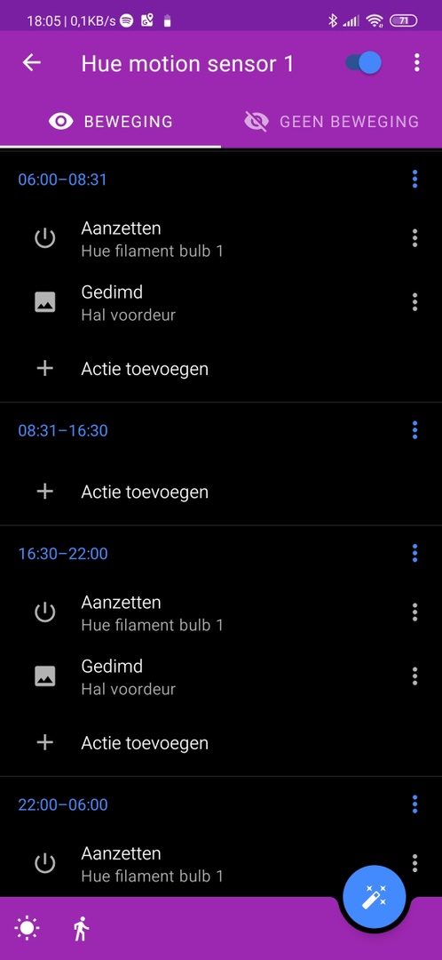 Koppelen van de lampen aan de bridge is appeltje-eitje, net als instellen, en het koppelen van de motion sensor aan de lampen.