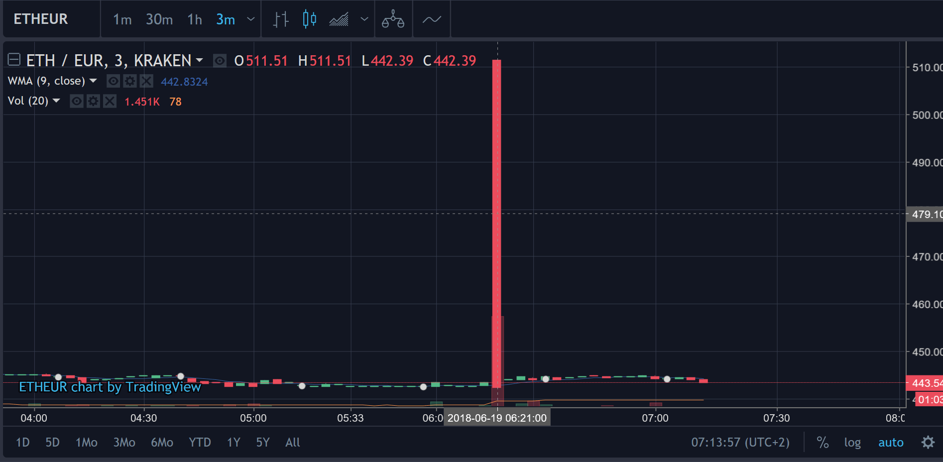 Zo iemand wou van zijn geld af en had een market order ETH geplaatst, die zal even zuur zijn.