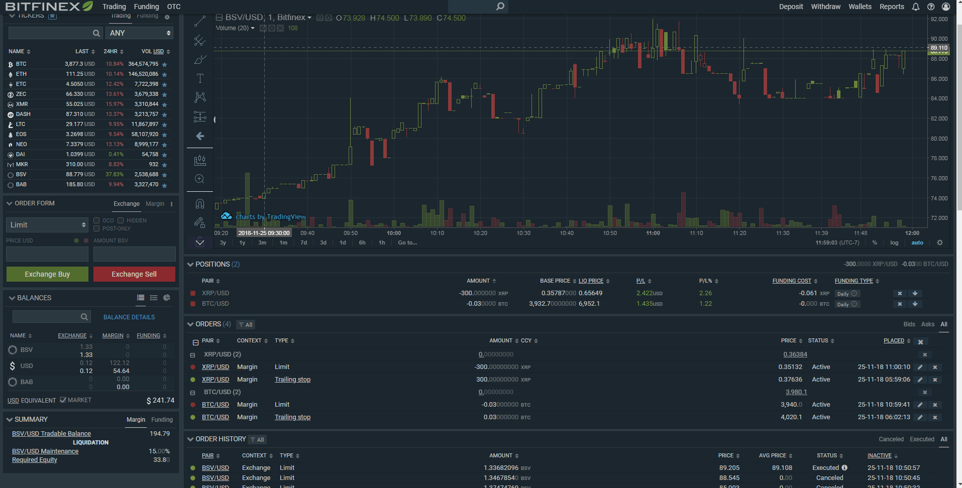 Ok, genoeg over Bitfinex en Tether, wie zit er nog meer op de BCHSV trein? Er zijn meerdere signalen die erop wijzen dat de heren Wu en Ver het bijltje erbij neer gaan gooien en SV lijkt te winnen. Of dat waar is zullen we de komende paar weken wel zien, maar, SV wint aardig aan terrein en met +38% een leuke investering. Ik zit all-in sinds 90.90 en verkoop rond 98.31 alles, om daarna even aan te kijken of de 100 wordt doorbroken.