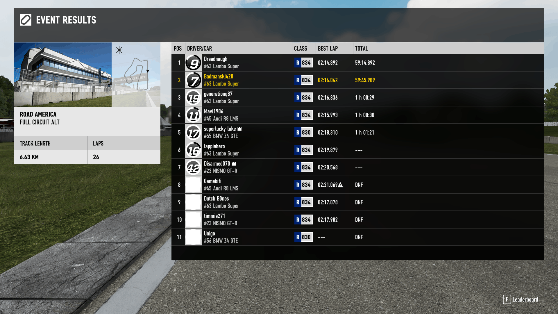 FM7 GoT Racing League - Road America Full ALT (9 juli 2018 @ 20:15)