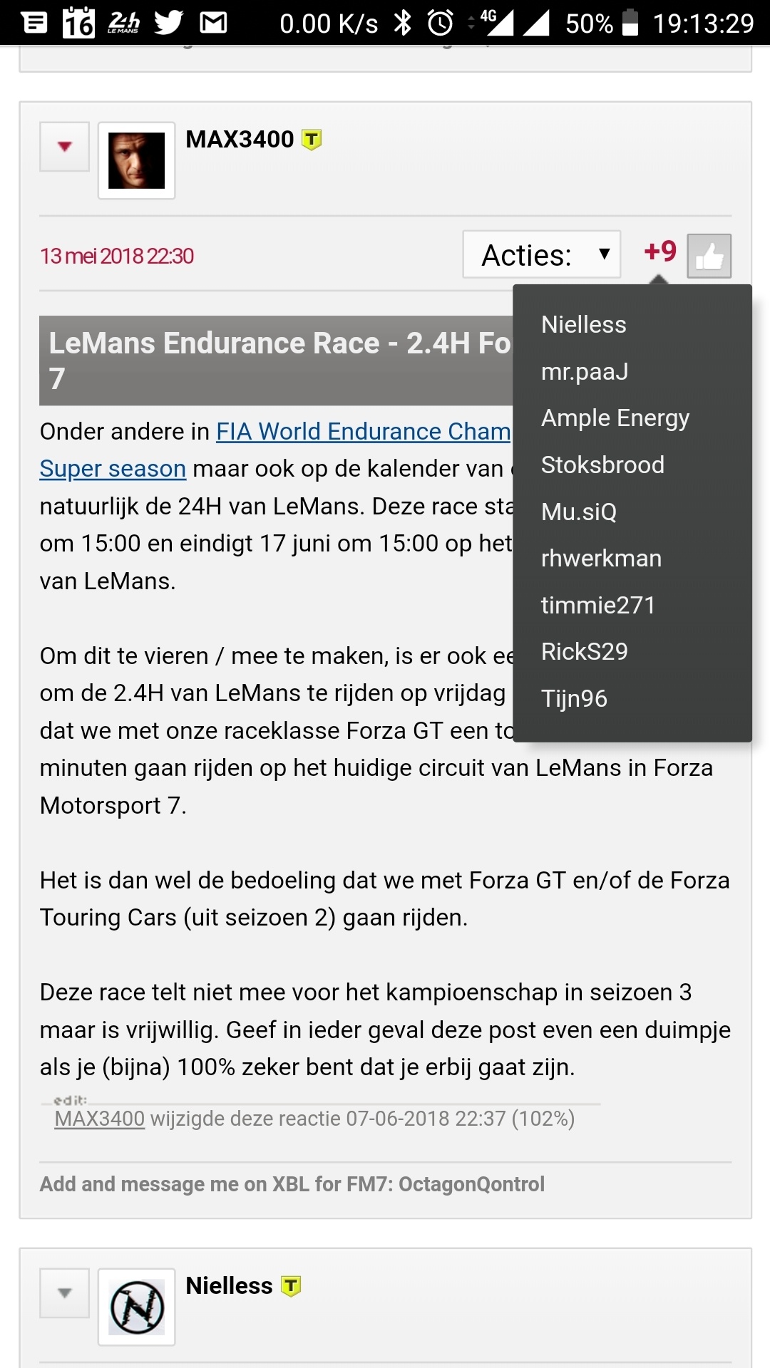 Waarom moest je trouwens de eerste ronde de pit in? Ik vond het wel prettig, aangezien ik lekker een "Le Mans-ervaring" had doordat ik in de spiegel naar je koplampen moest zoeken en een afwijkende lijn moest gaan rijden! Erg leuk zo, ondanks dat ik weinig heb kunnen socializen voor een vrijdagavond