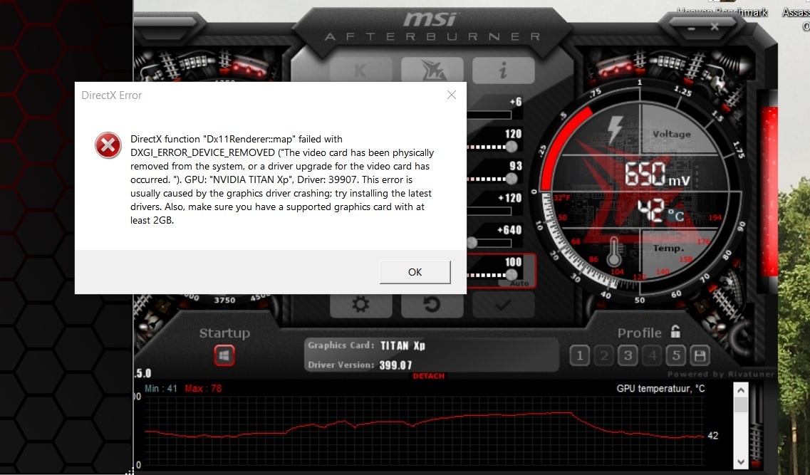 Dit heb ik als mijn GTX 1080 Ti op 2012mhz draait, het heeft bij mij dus te maken met de overclock, wat in alle andere games stabiel draait.