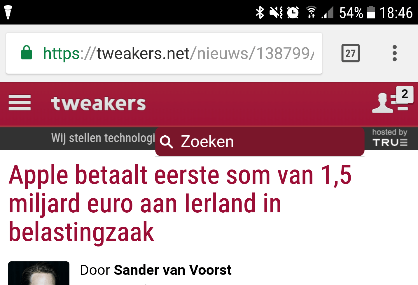 Ik zie een vreemde zoekbalk onder de header die permanent in beeld blijft. Dit is op Android 7.0.0, Chrome versie 66.0.3359.158, Samsung S7 (niet Edge).