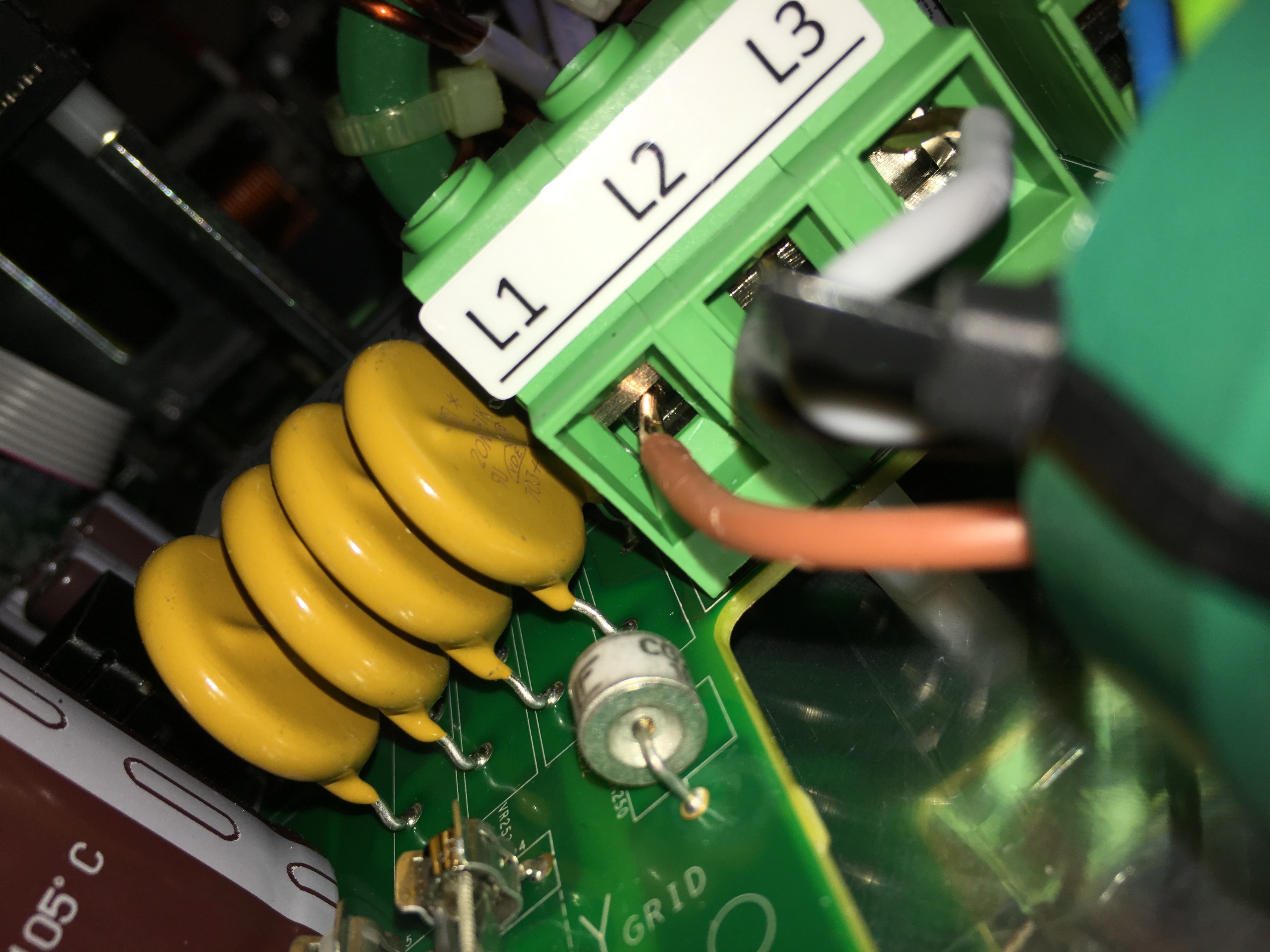 De klemmen bewegen slecht of niet meer, met name nu bij de L1 aansluiting, de andere dolgedraaide hebben we kunnen herstellen door een 6 mm2 kabel te gebruiken, waardoor de klem minder ver dicht hoefde.