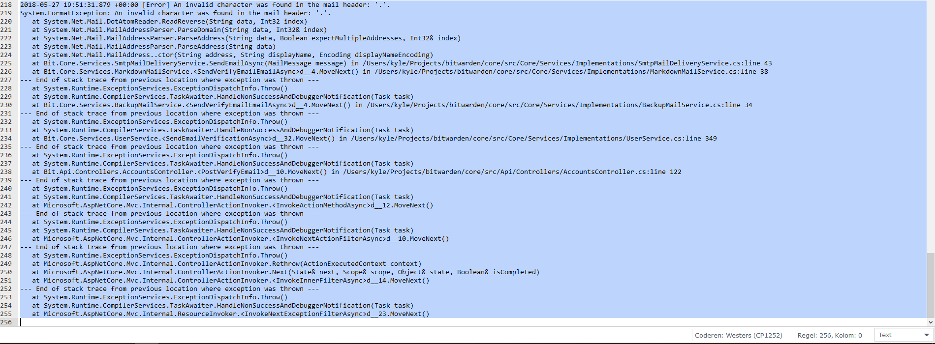 Hieruit blijkt dat er een fout character zit in de email header? Ik heb alles dubbel gecheckt, ook de codering van het bestand veranderd, echter geen resultaat.