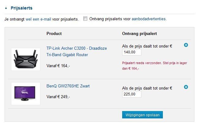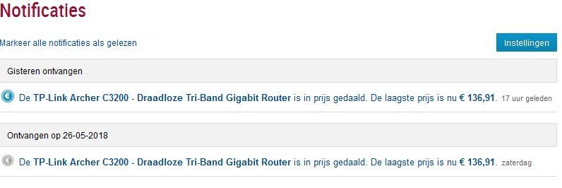 Ik heb zaterdag en gister een notificatie gehad dat een router naar een prijs is gedaald die niet klopt (heb ook direct gecheckt):