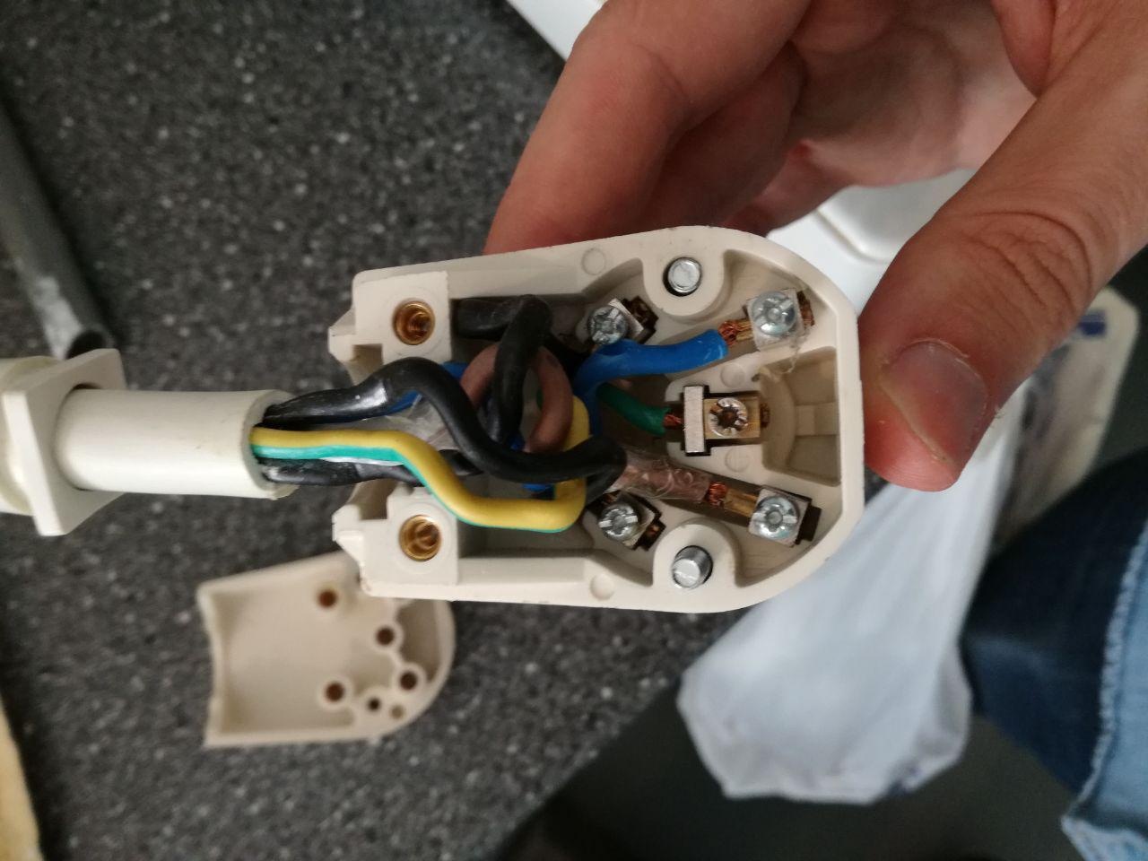 Onlangs heb ik een nieuwbouw appartement mogen betrekken, zonder gasaansluiting. Via via een elektrische kookplaat op de kop getikt, met perilex stekker. Omdat de draad te lang was heb ik deze ingekort. Uiteraard heb ik van tevoren een foto van de situatie gemaakt wat betreft de draadkleuren in de stekker. Let wel, er zit dus 2x zwart in!