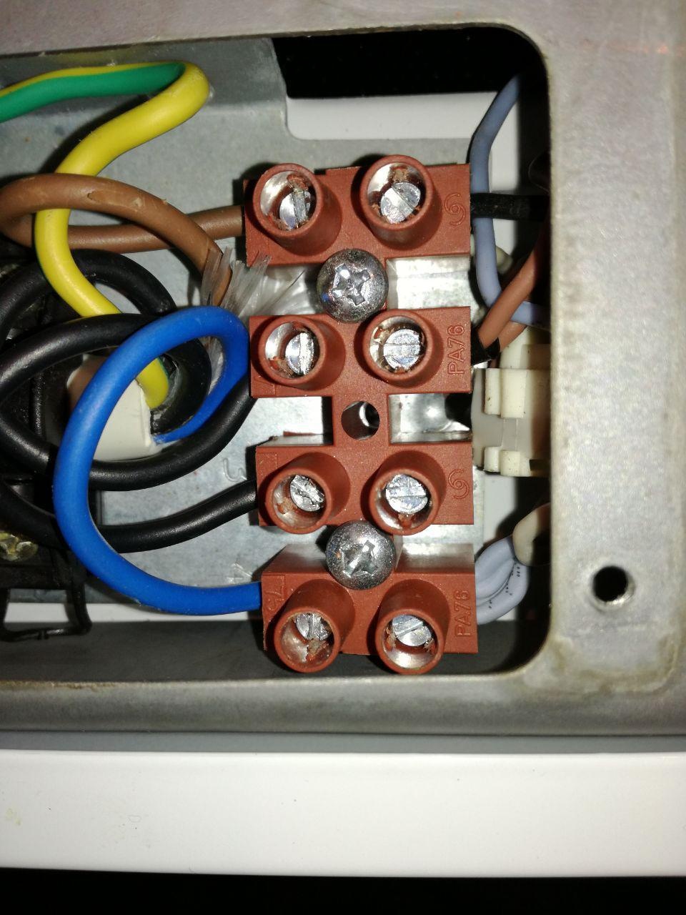 2. Ik heb de plaat maar eens open geschroefd en tot mijn verbazing is 1 van de 2 zwarte draden uit de stekker niet aangesloten aan de plaat... De onderste zwarte gaat niet verder: