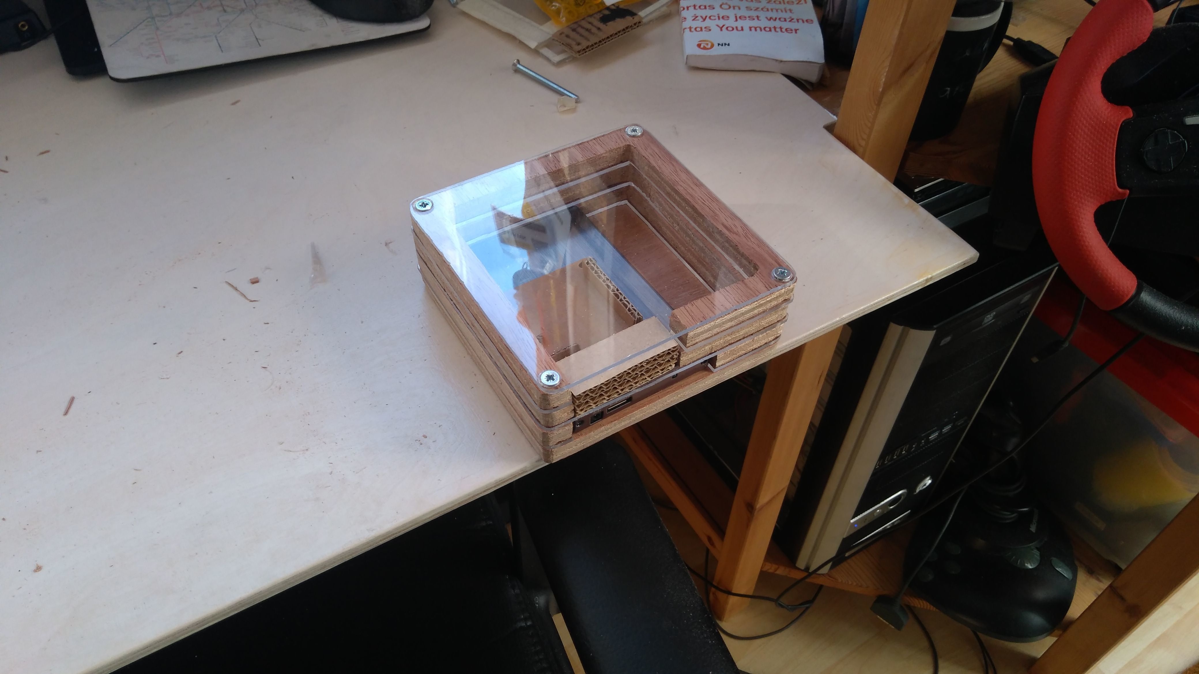 Qua ontwerp had ik iets dergelijks in mijn hoofd, gemaakt van lagen multiplex i.c.m. plexiglas: