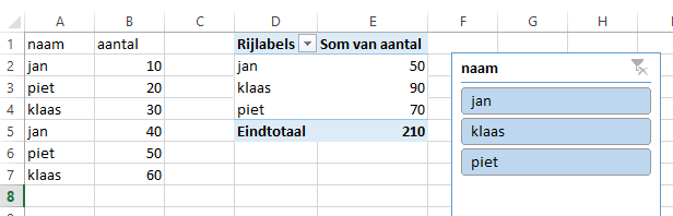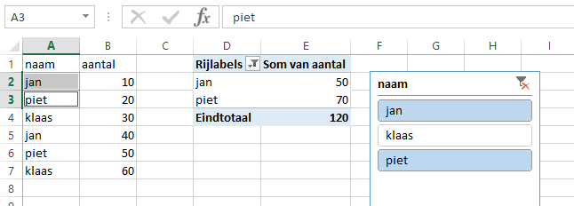 In plaats van slechts 2 waarden J17 en J18 om de pivot table te filteren kunnen het er meer zijn zoals hieronder te zien is: