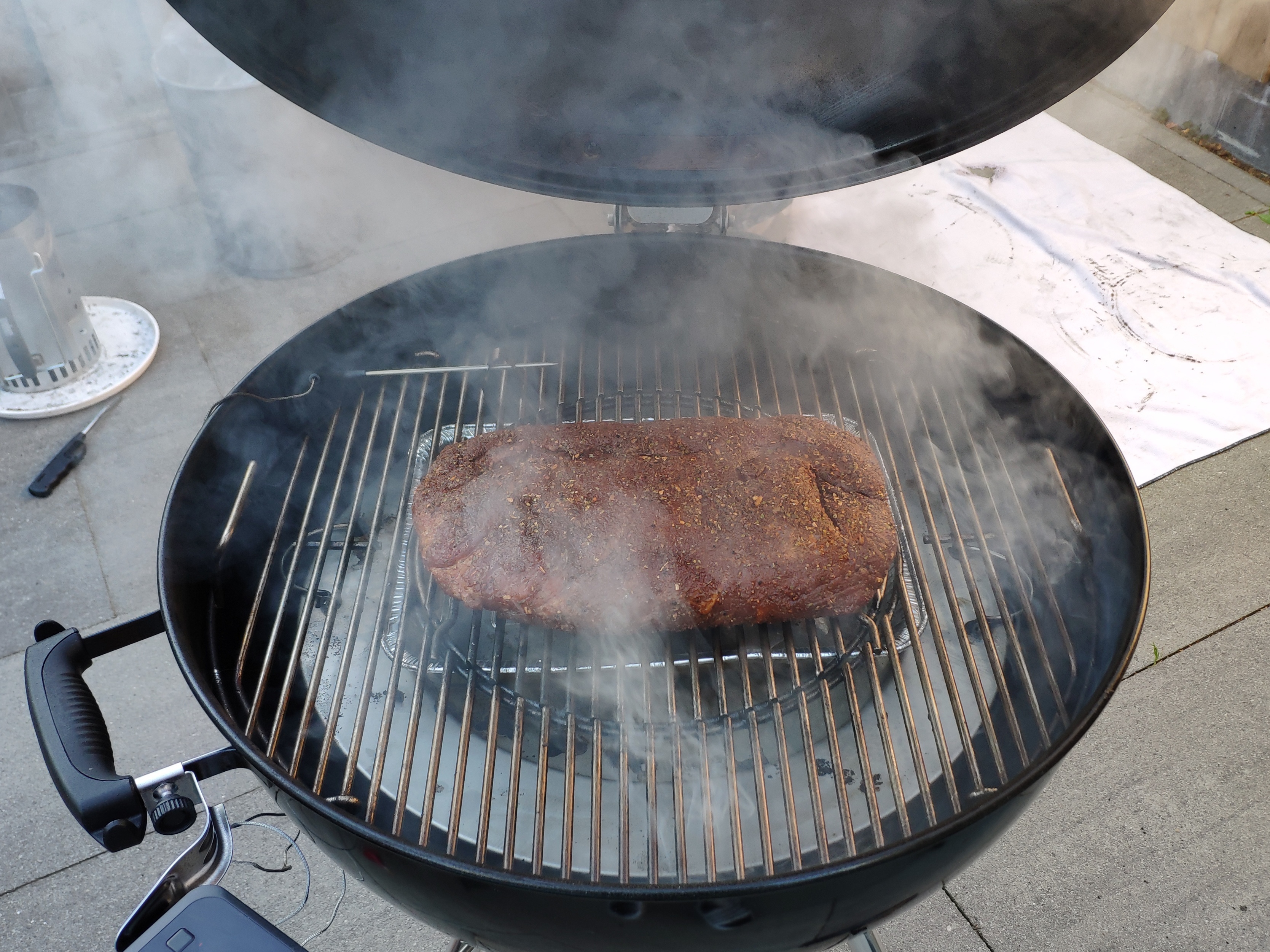Ga hem op een Weber MT garen, gebruik appel hout en richt op 110 °C. Wat schatten jullie in kwa eind tijd? Zal morgen updaten.