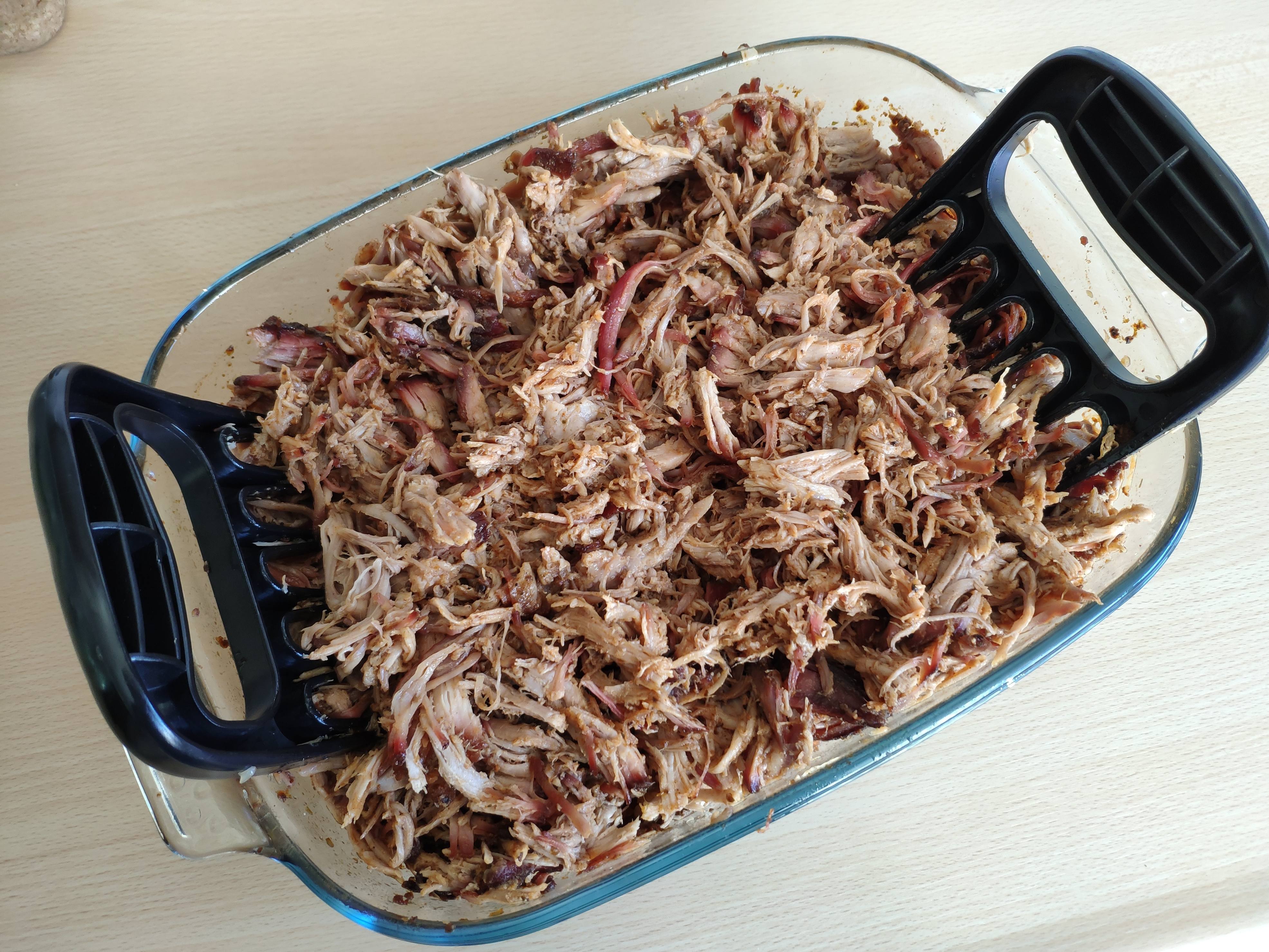 Nou mijn aller eerste pulled pork avontuur is aan zijn einde gekomen. Hij lag er om half 8 op een ging er rond kwart over 4 af met een kern temp van 94, toen wasie pas boter mals.