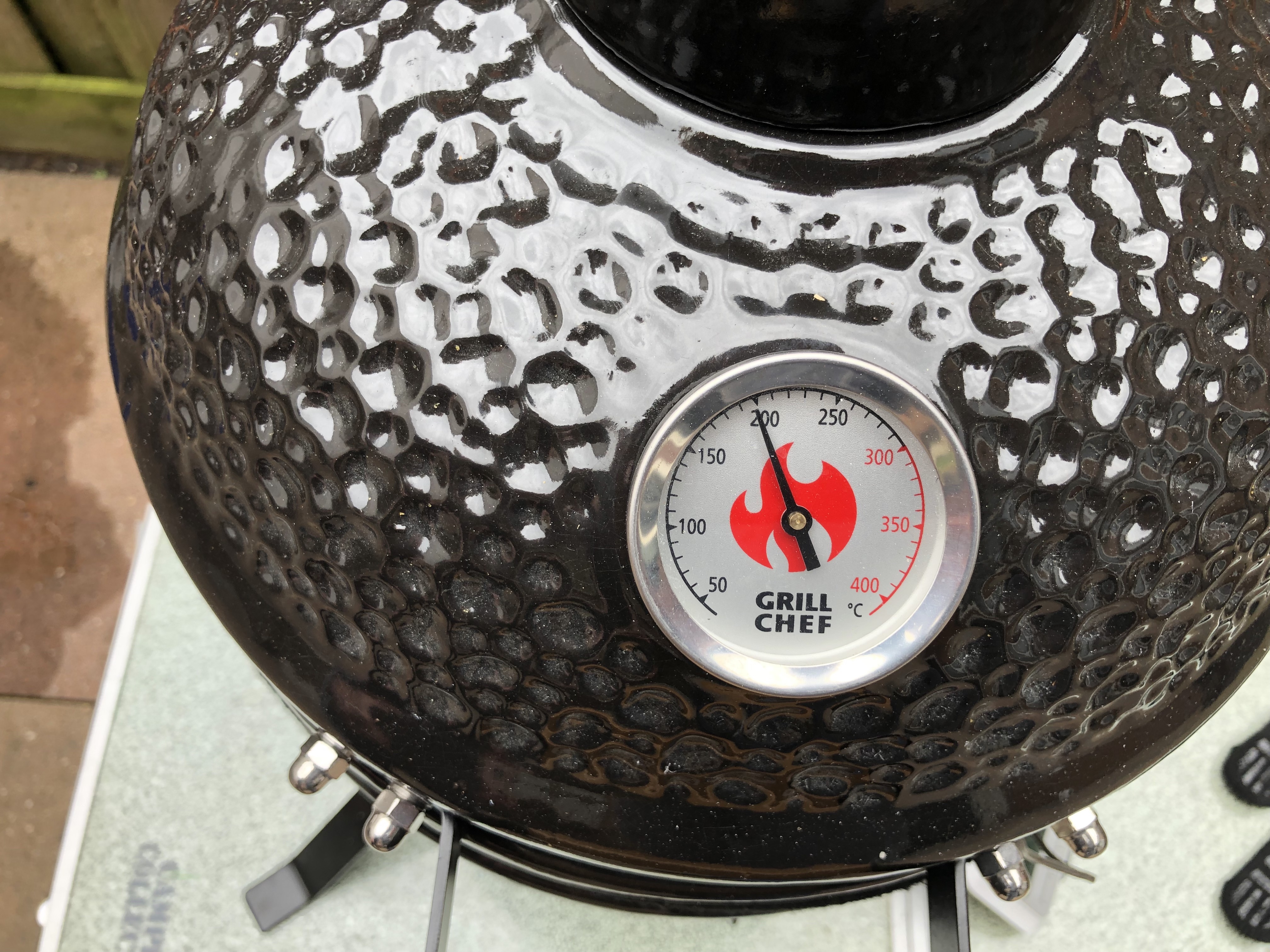 Na het eten was het duidelijk dat de tweak van de luchtschuif onder prima zijn werk doet, na een uur en 15 minuten stond de temperatuur op "0" volgende de dome thermometer op de kamado. De kolen moeten dan ook wel veel eerder uitgegaan zijn waardoor de buitenlucht de Kamado verder afkoelde.
