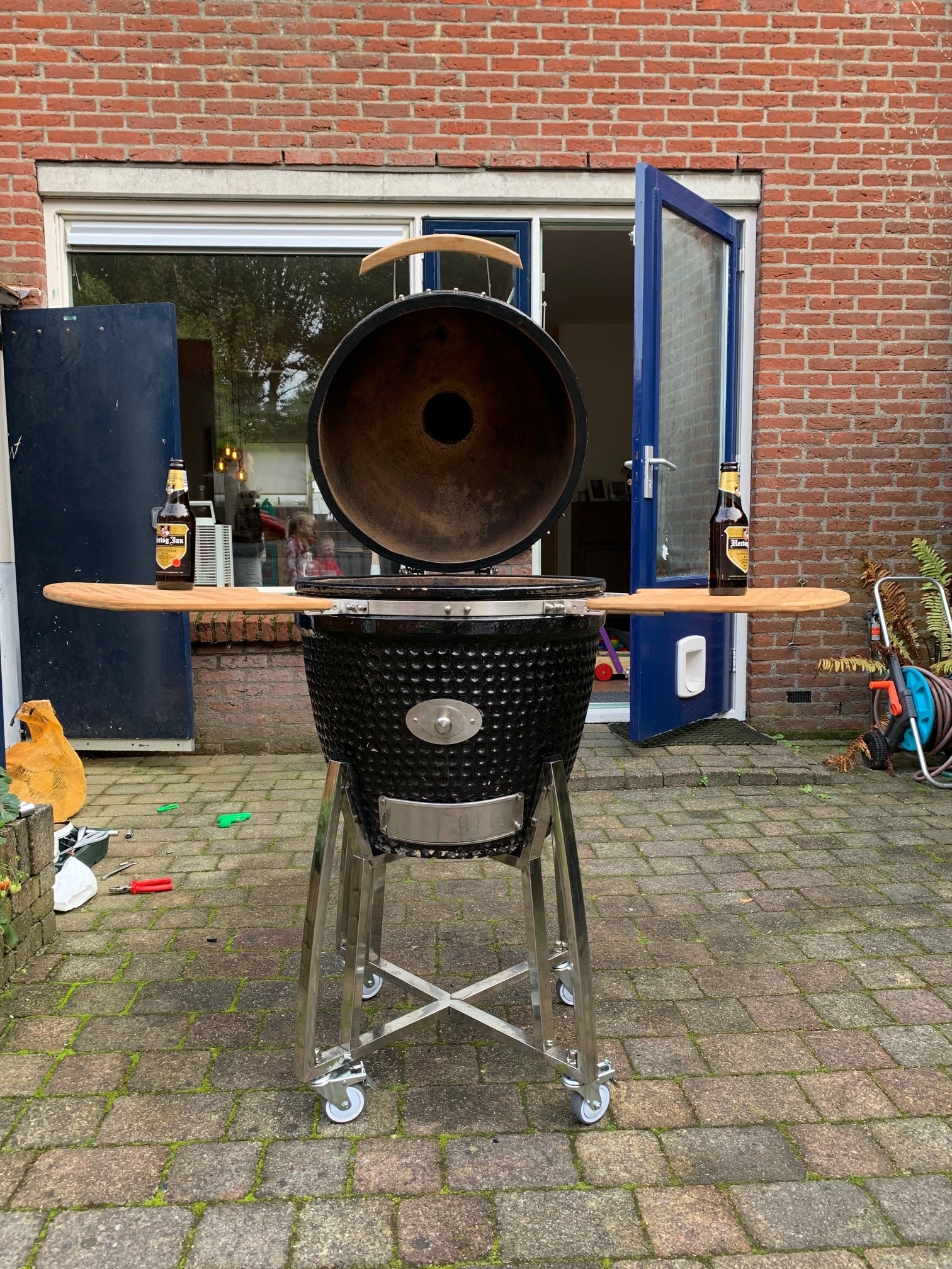 Lastig om met een klein ei de temperatuur stabiel te houden. Elke windvlaag (welkom in Noord-Holland) trekt de kolen weer aan de gang waardoor er dikke overshoots tussen zaten. Maar goed, uiteindelijk redelijk stabiel tussen 110 en 120 graden. Ik durfde het ook aan om nog even een uurtje wat te gaan halen, en er niet naar om te kunnen kijken.