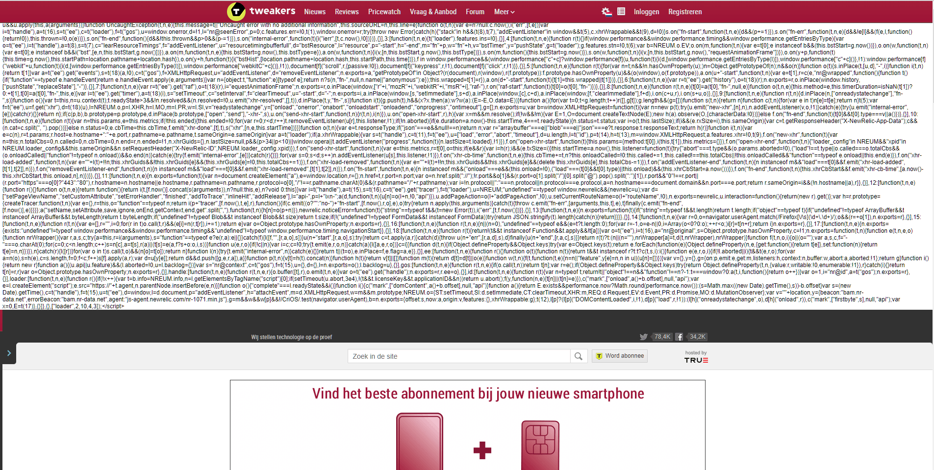 Dit zie ik in de bovenste balk, waar normaal een ad hoort te staan (welke uitgeschakeld zijn vanwege abo).