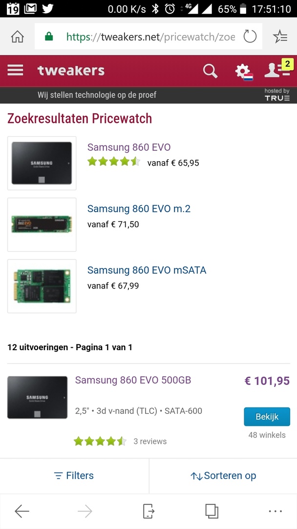 Zodra je op de link klikt, kom je bij product: Adata Ultimate SU800 terecht waarbij ineens blijkt dat de prijs van een 256 GB-versie € 59,50 is. De geadverteerde prijs van € 36,95 is van het 128 GB-model en is toch wel een vorm van misleiding.