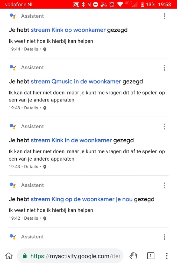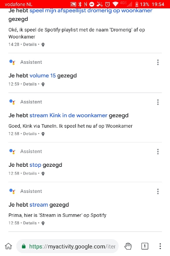 De naam die je aan een activity geeft lijkt niet heel effectief, maar het type wel, in mijn geval gaat bijvoorbeeld "Vinyl afspelen" welke als icoontje de muzieknoot heeft aan met het commando "Zet Muziek luisteren aan".