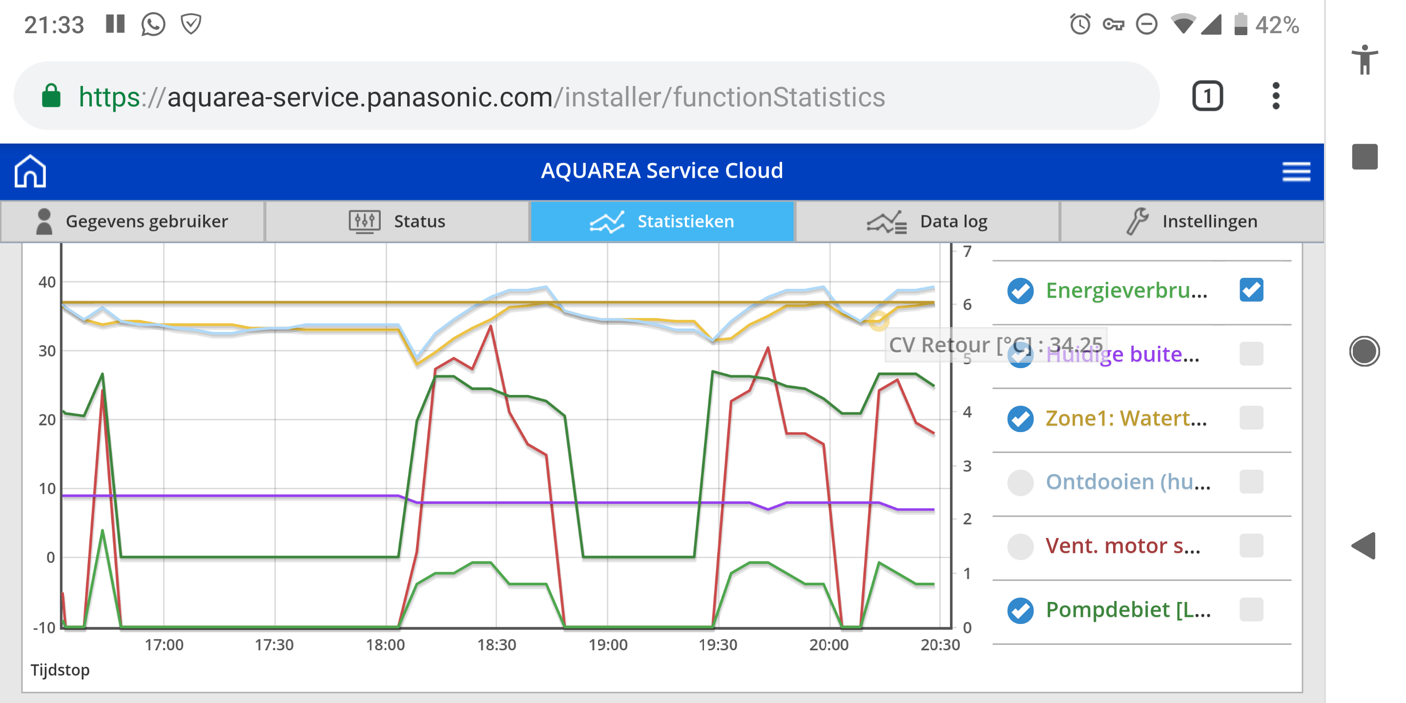 Energieverbruik klopt inderdaad voor geen meter, zeker bij hogere Tb. Maar de opbrengst per week of jaar (geeft dag of maand te kiezen) klopt wel! Dus als je de opbrengst van de pana combineert met het gemeten verbruik komt er een correcte COP uit. December 4,58 en januari 4,01, defrosts meegeteld, Ta 30 bij 2 graden, vloerverwarming geen SWW. En dat zit precies op de lijn in het Exel sheet!visioncvg schreef op zaterdag 9 februari 2019 @ 14:52: