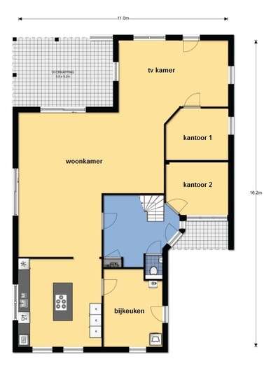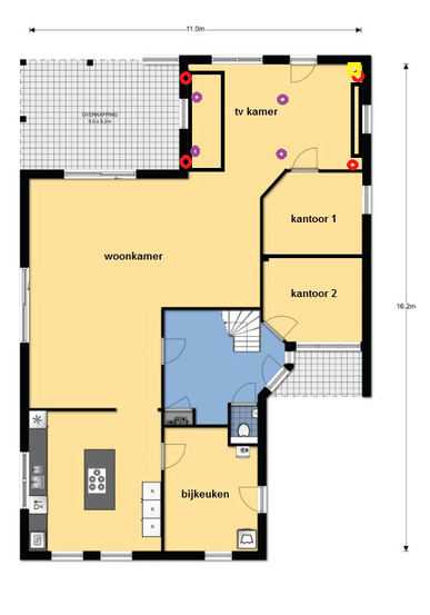 Plattegrond (koof niet op tek. te zien maar zoals gezegd rondom langs de wanden tv kamer):